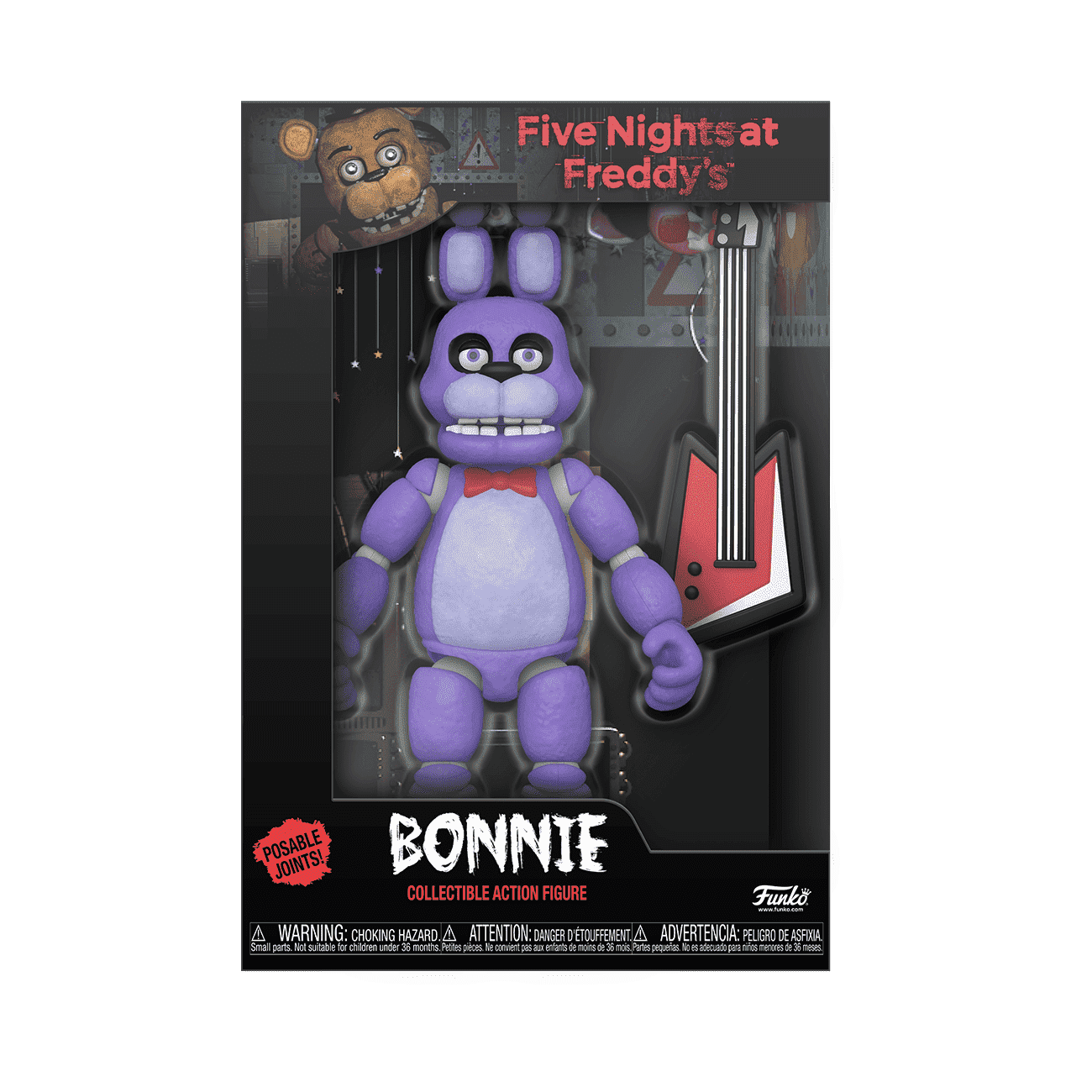 Survive the night at Freddy Fazbear’s Pizza with a Five Nights at Freddy’s Bonnie Action Figure. Catch him before he moves! Collectible action figure has multiple points of articulation and is approximately 13.5 in (34.3 cm) tall.