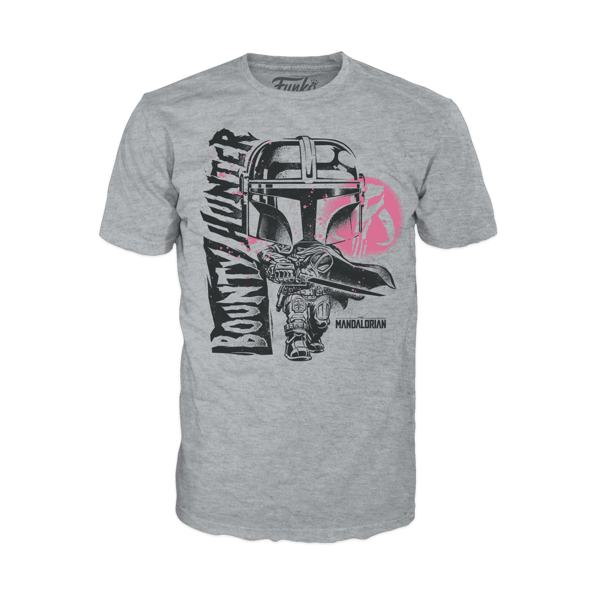 Your bounty is waiting. Claim your destiny in an outfit that rules with the Star Wars:™ The Mandalorian™ Bounty Hunter Pop! Boxed Tee. On the front of this tee-shirt and special edition box, Din Djarin marches forward with the Darksaber in hand. The phrase “bounty hunter” appears to the side while the Mandalorian symbol appears in a pink spray paint motif. This cozy, heather grey tee is perfect for travelling the galaxy or making a triumphant return home.