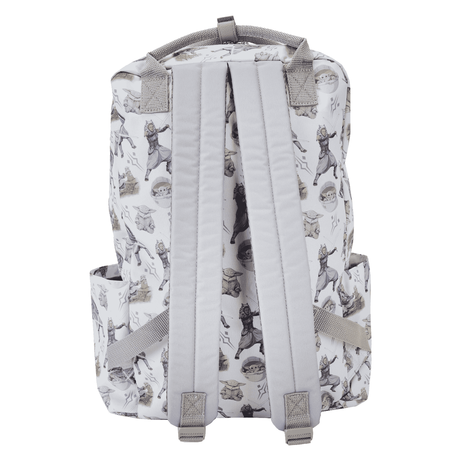 Walk the path of Jedi™ with the Funko Star Wars™ Ahsoka™ Nylon Backpack! The allover print of this bag features a motif of Ahsoka, Grogu ™, and Ahsoka’s facial markings against a cool grey background. With a large main pocket, a hidden zipper pocket, and two side pockets, this stellar backpack has plenty of room for carrying all your Jedi™ gear across the galaxy or wherever your journey takes you! Straps and accents in grey compliment the print on this stylish backpack.