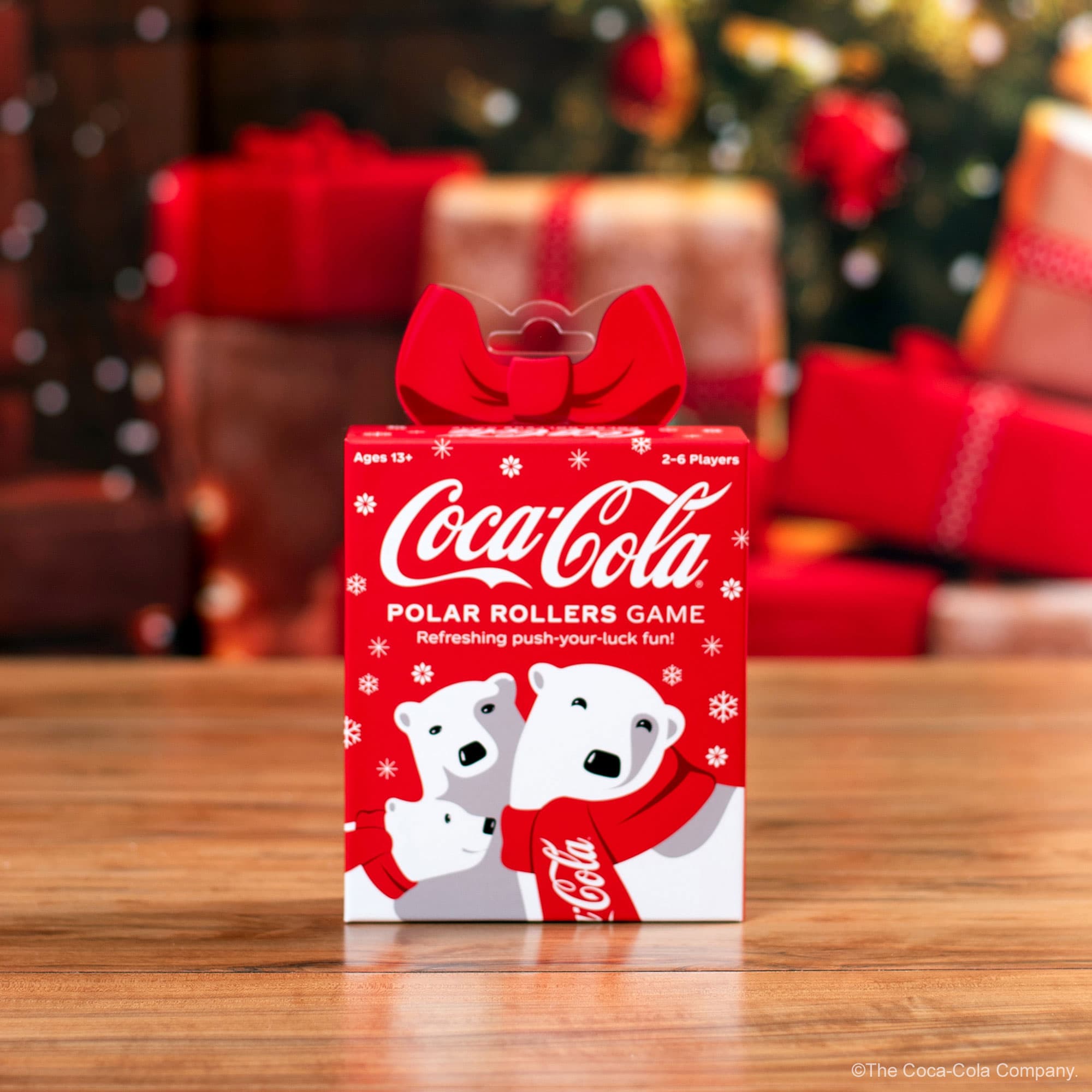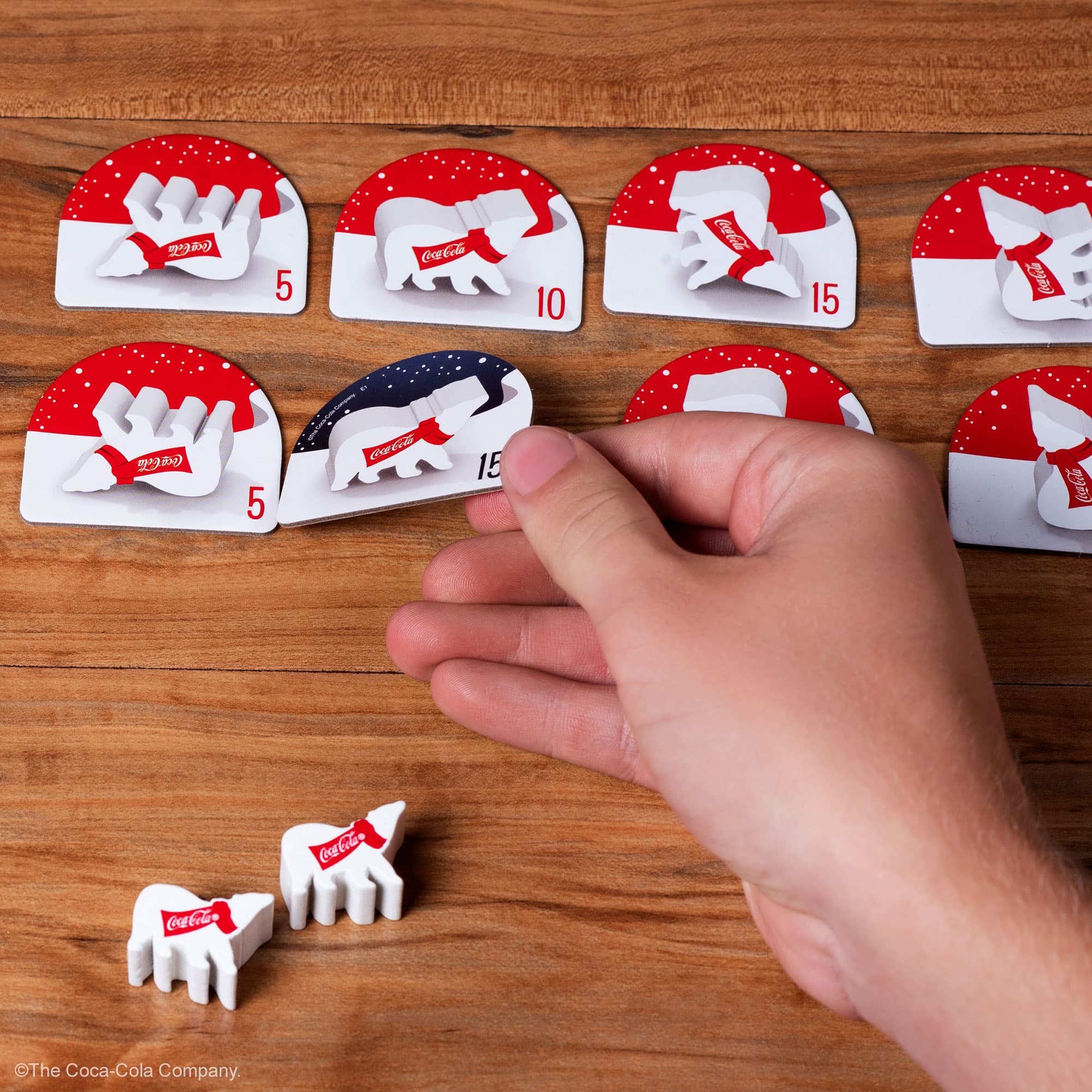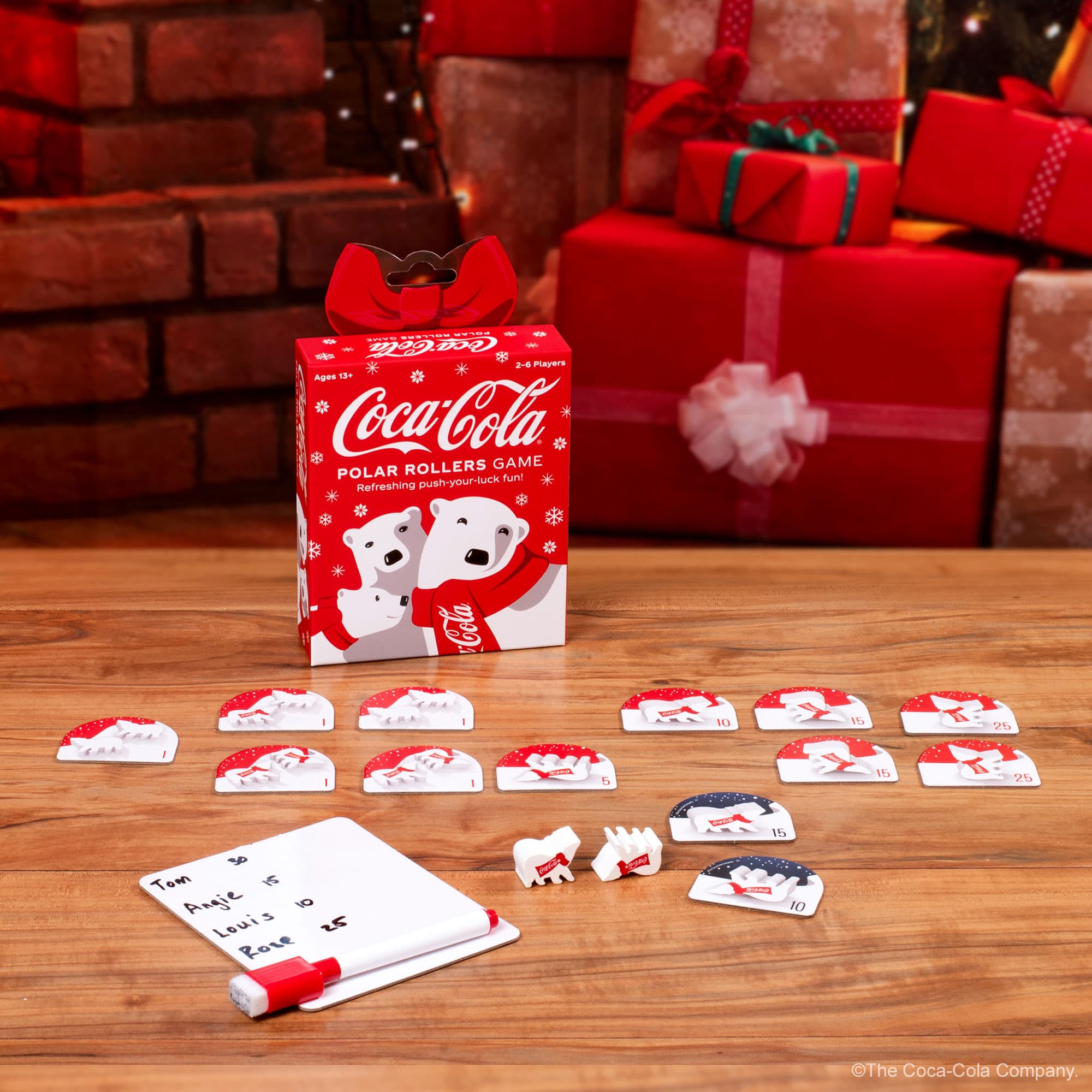 Share a smile and pass a pair of Coca-Cola Polar Bears in this lively push-your-luck game! Each turn adds bigger rewards as you roll the bears to match and score. You can stop anytime, or keep rolling for more points...just don't get frozen out! Enjoy at your next game night!