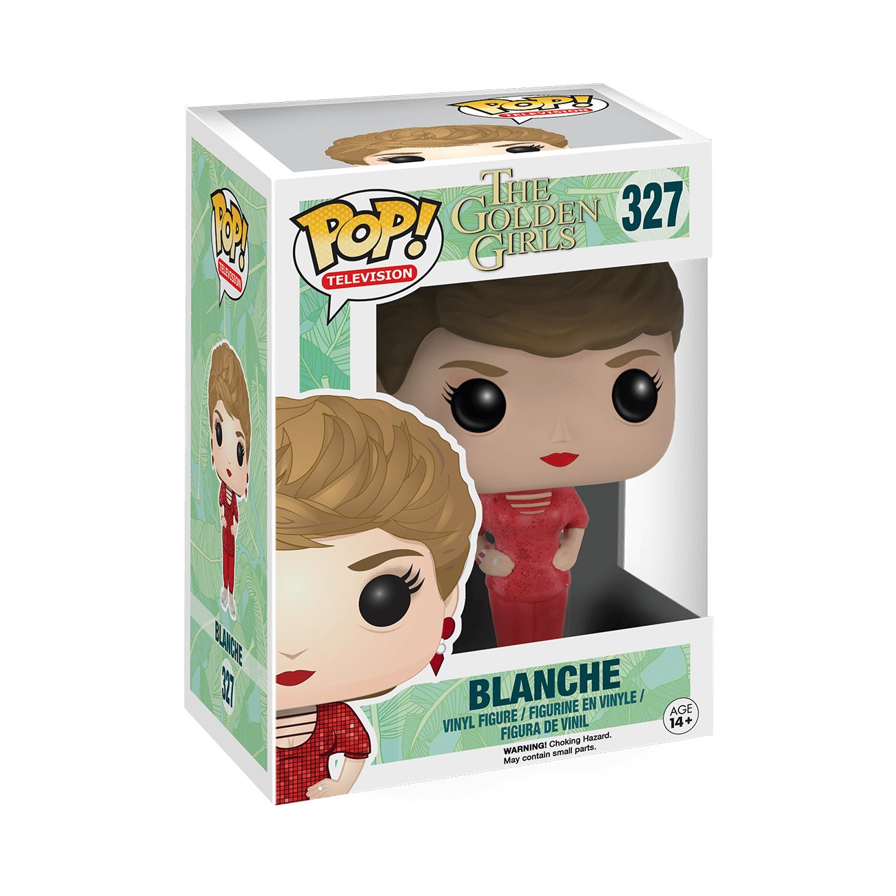 Bring home The Golden Girls' Southern Belle, Blanche, as a Pop! She'll bring a dash of sass and date night drama to your collection. Collectible stands approximately 3.75 in (9.5 cm) tall.