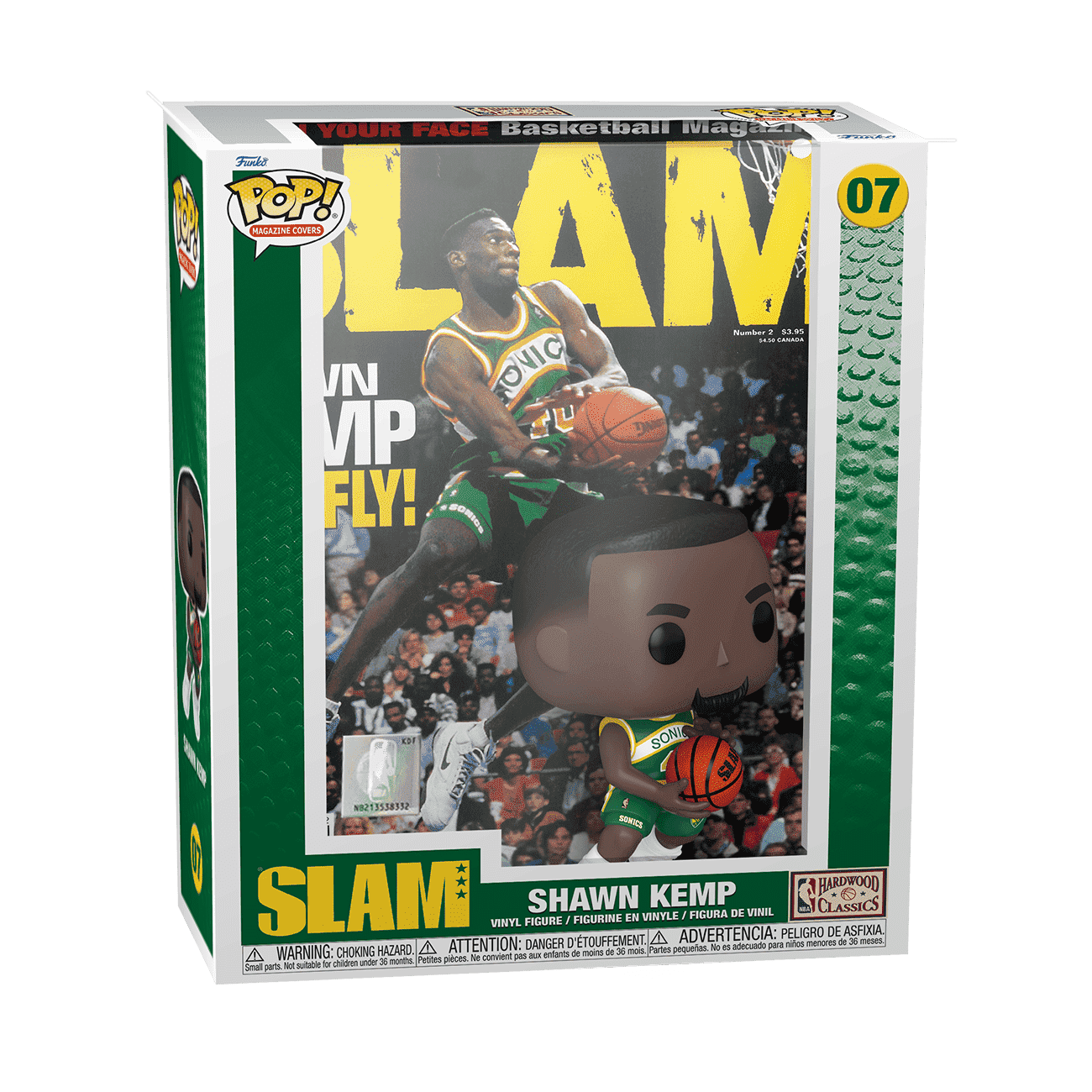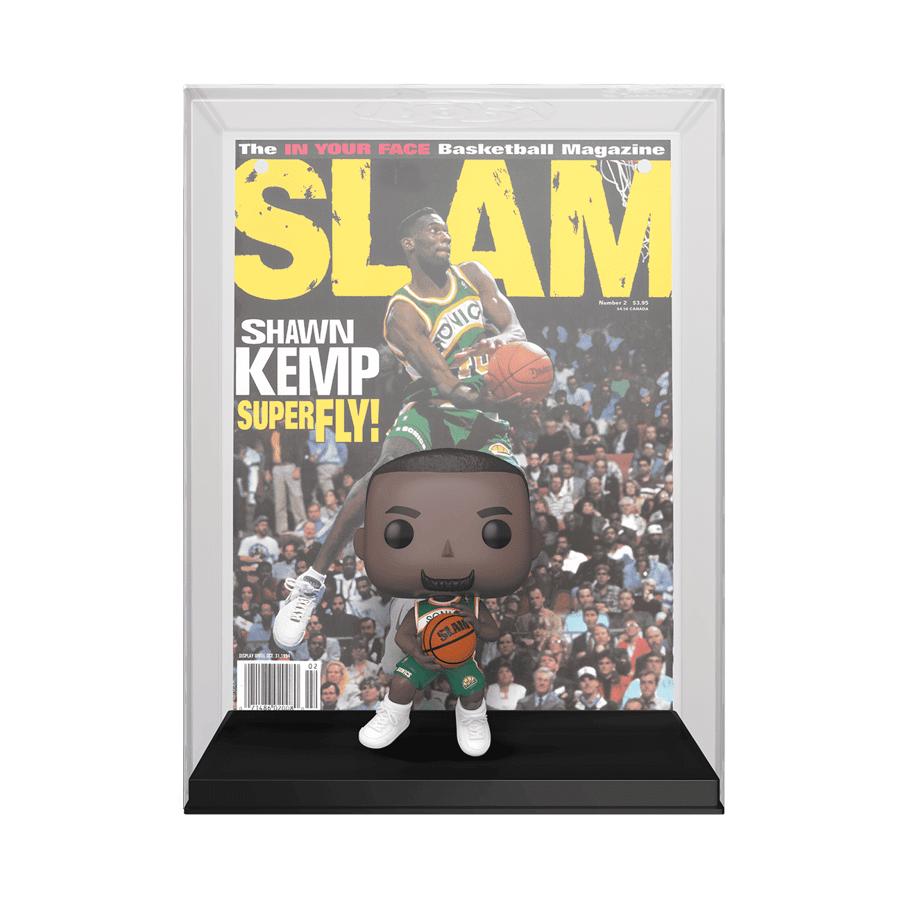 Commemorate an iconic sports magazine cover for your NBA collection with the Pop! Magazine Cover SLAM Shawn Kemp. The collectible features a Pop! Shawn Kemp figure along with the matching cover art, and comes prepackaged in a protective case that can be hung on your wall!