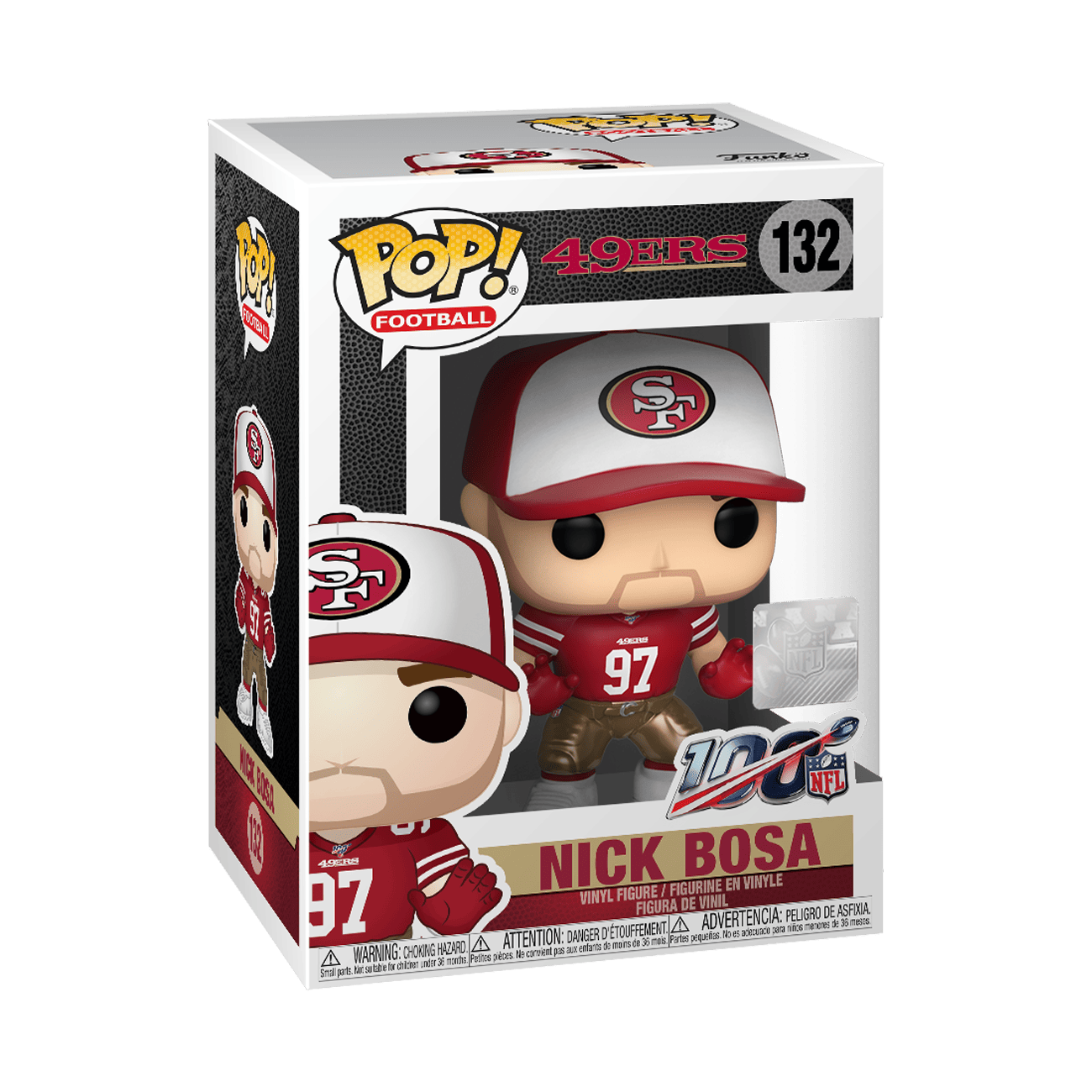 Draft Nick Bosa, defensive end for the San Francisco 49ers, into your National Football League collection with Pop! Nick Bosa in his home uniform. Vinyl figure is approximately 4 in (10.2 cm) tall.