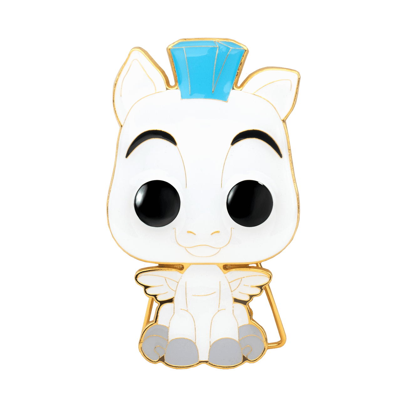 Help Pop! Pin Baby Pegasus find his way back to his young companion Hercules, by adding him to your Disney pin collection. There's a 1 in 12 chance you may find the chase with features polyurethane details. Pin features gold colored hardware, and a built-in stand. Enamel pin is approximately 4 in (10.2 cm) tall.