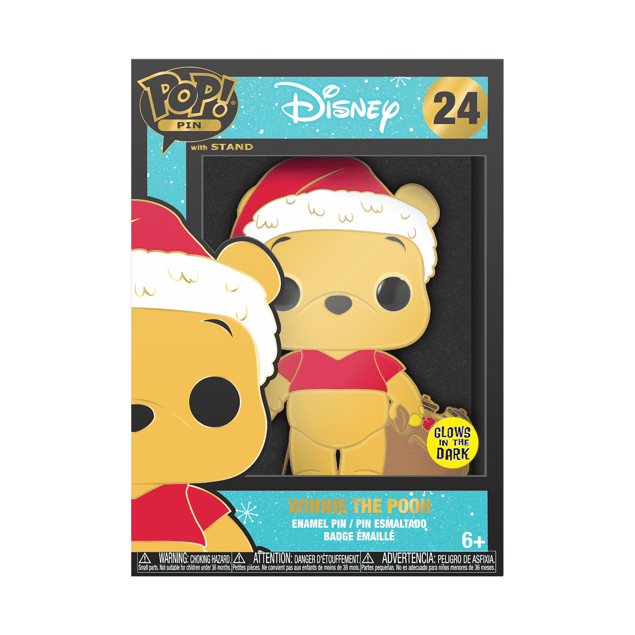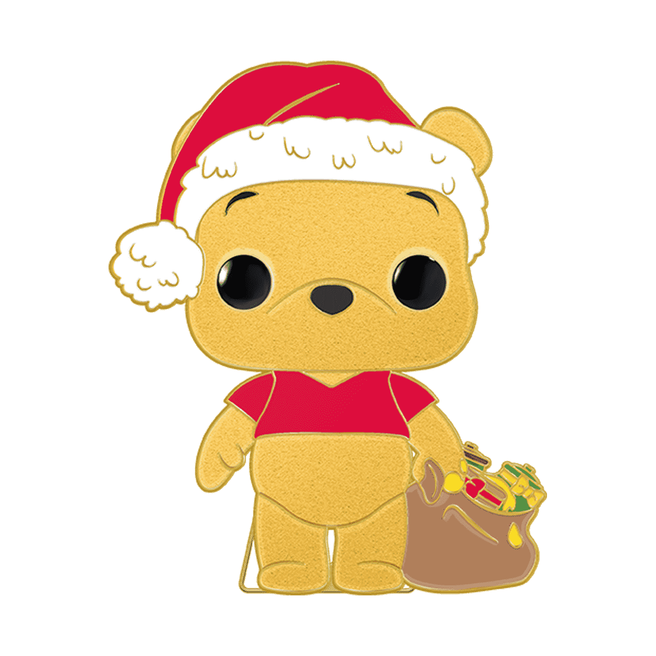 With his festive red and white hat and bag of presents, Winnie the Pooh is ready to ring in the season! Embrace the spirit of the holidays by welcoming Loungefly Pop! Pin Winnie the Pooh into your Disney classics collection. There’s a 1 in 12 chance you may find the chase variant of Pop! Pin Winnie the Pooh with faux suede. This Pop! Pin features glow-in-the-dark enamel fill, gold-colored hardware, and a built-in stand. Enamel pin is approximately 4 in (10.2 cm) tall.