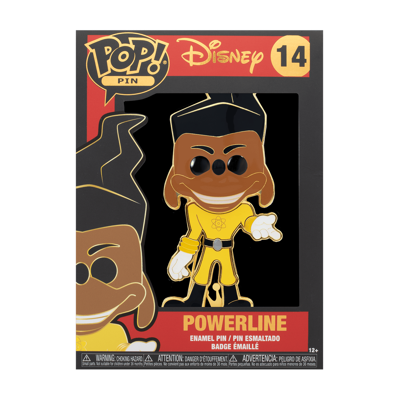 Goofy's son Max is a huge fan of rock star Powerline! Add Powerline to your Disney collection as a Pop! Pin to help Max meet one of his heroes. Pin features gold colored hardware, and a built-in stand. Enamel pin is approximately 4 in (10.2 cm) tall.