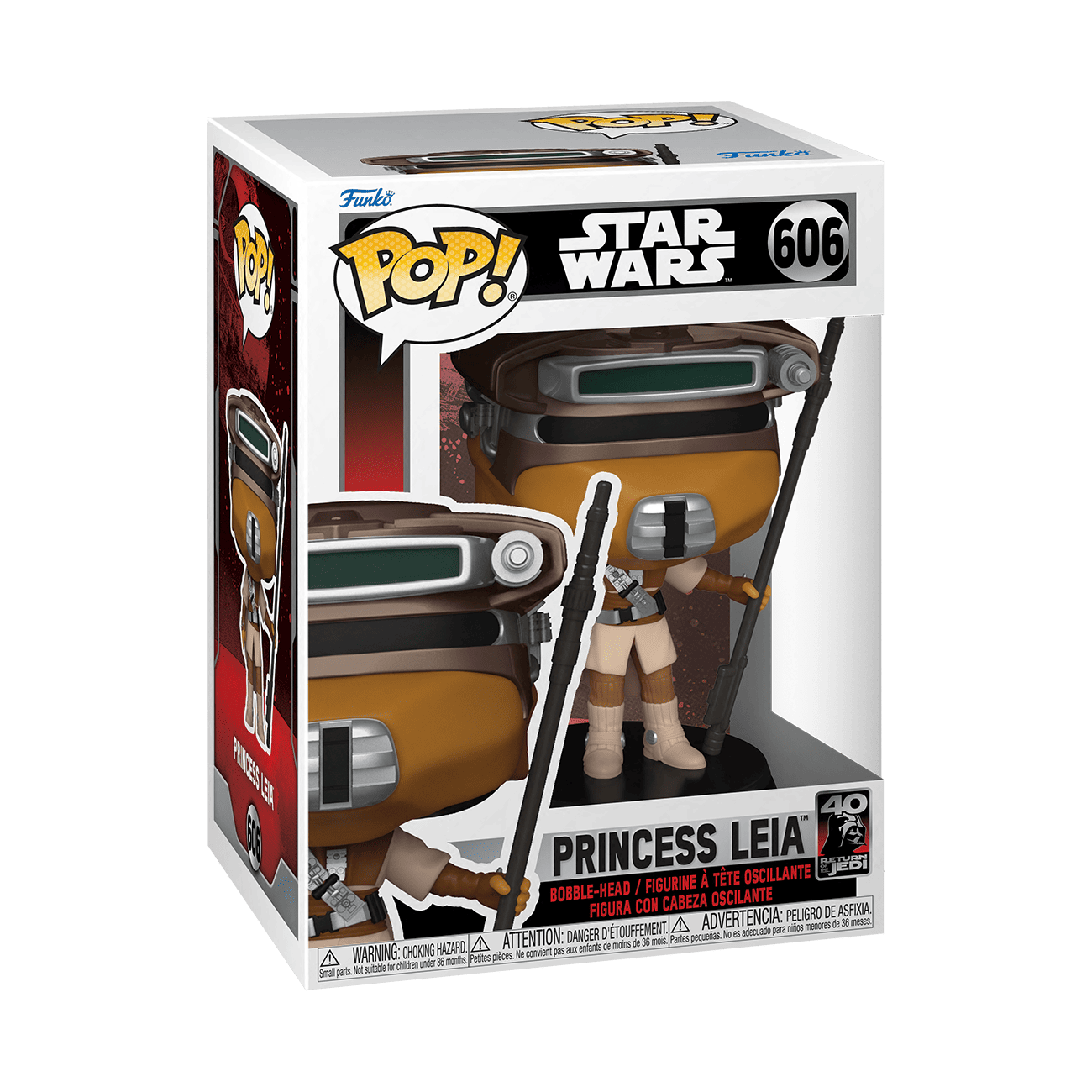 Celebrate the 40th Anniversary of Return of the Jedi™ with the most stellar fandom of all! Pop! Princess Leia™ has donned her Boushh™ disguise to infiltrate Jabba the Hutt’s Palace™! Complete your Star Wars™ collection by bringing this rebellious princess into your home. Vinyl bobblehead is approximately 4.3 in (10.9 cm) tall.