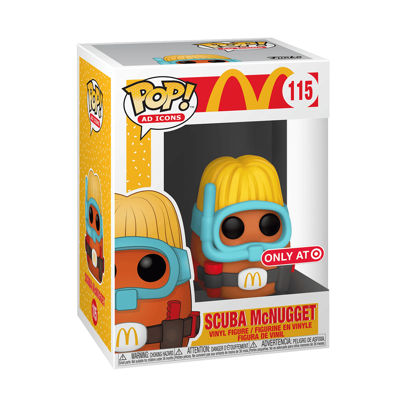Bring together Ronald McDonald and friends with Pop! Scuba McNugget (Target Exclusive). Your Ad Icon collection isn't complete without the Scuba McNugget from McDonaldLand. Get yours while supplies last. Vinyl figure is approximately 3.15 in (8 cm) tall.