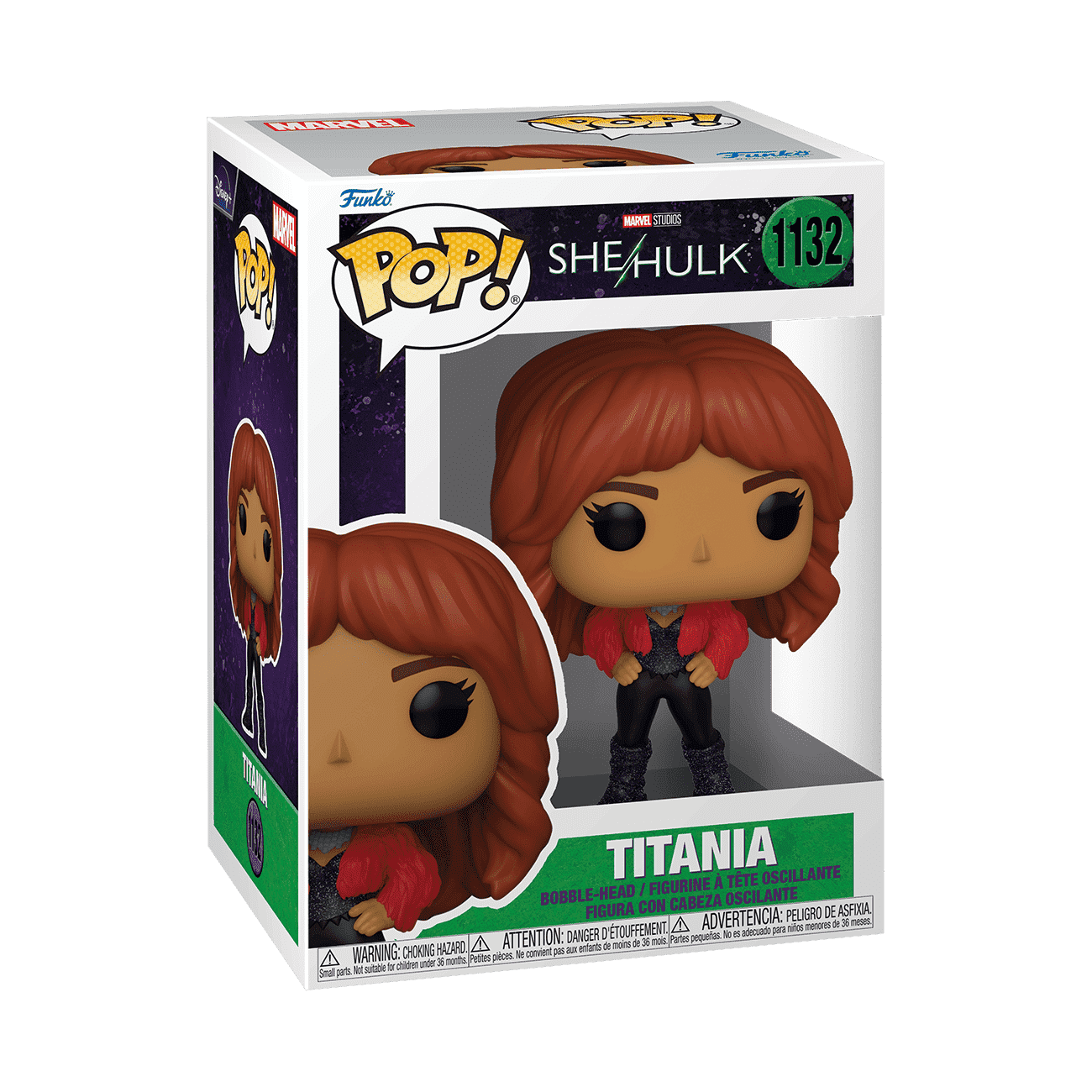 Crush your Marvel collection with Pop! Titania. Pop! Titania wants to wield her power and show off her strength. But what happens when she meets up with Pop! She-Hulk? Team up with your favorite heroes to mete out justice. Grow your Marvel Studio’s She-Hulk: Attorney at Law collection. Vinyl bobblehead is approximately 4 in (10.2 cm) tall.