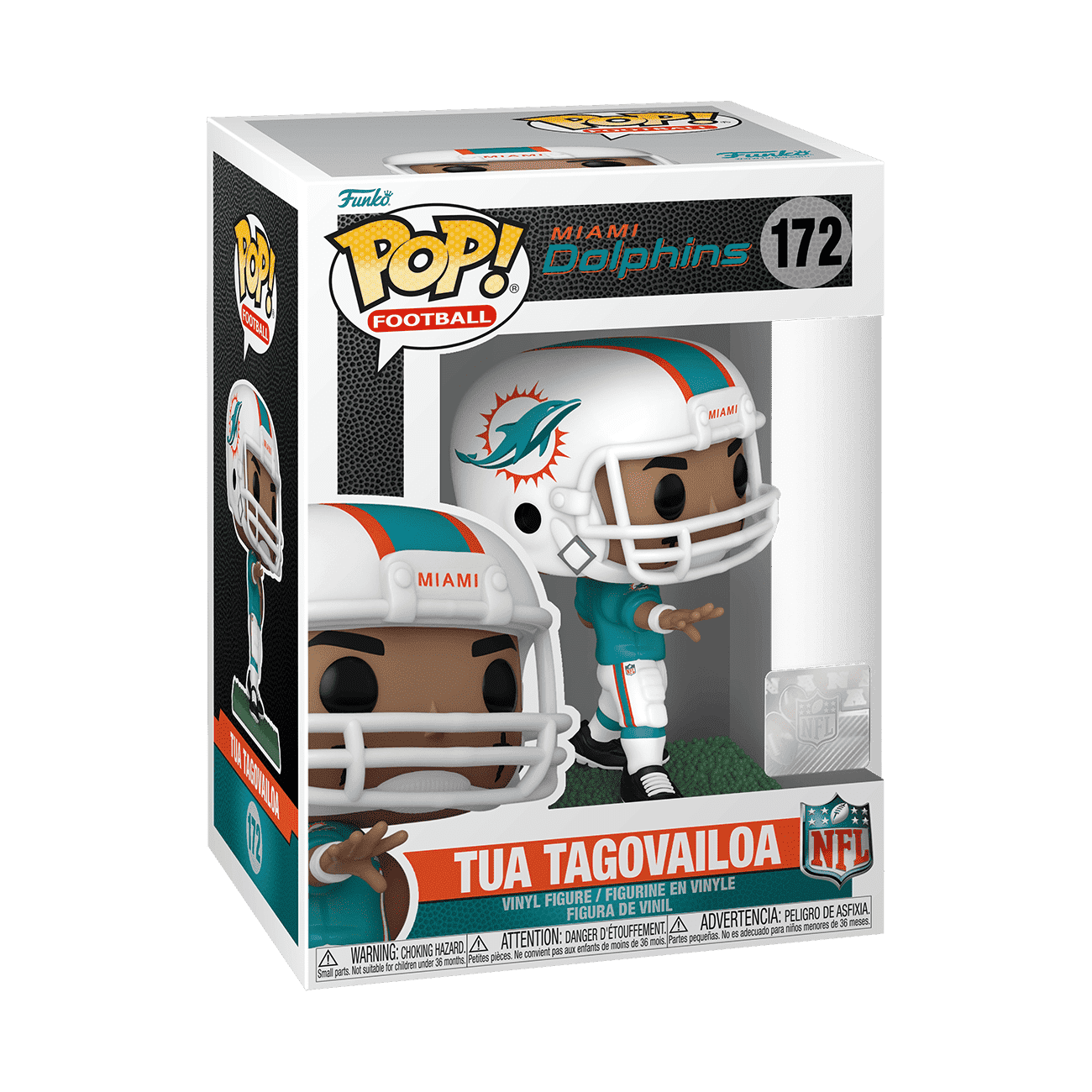 Take to the field with Pop! Tua Tagovailoa as he scores a game-winning touchdown! Wearing his aqua Miami Dolphins jersey, Pop! Tua Tagovailoa is ready to intercept your NFL collection. Vinyl figure is approximately 4.15 in (10.5 cm) tall.