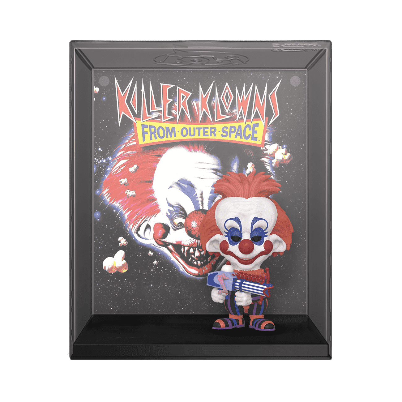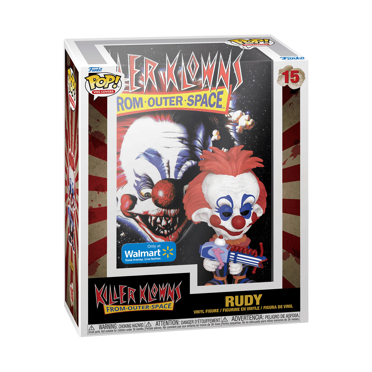 A circus tent-spaceship has come to town, and the creatures inside are not clowning around. Capture Rudy for your Killer Klowns from Outer Space collection as an exclusive Funko Pop! VHS Covers collectible. This unique collectible comes prepackaged in a protective case that can be hung on a wall or displayed with your VHS tapes. The Pop! figure is adhered to the base and backdrop to ensure display integrity.