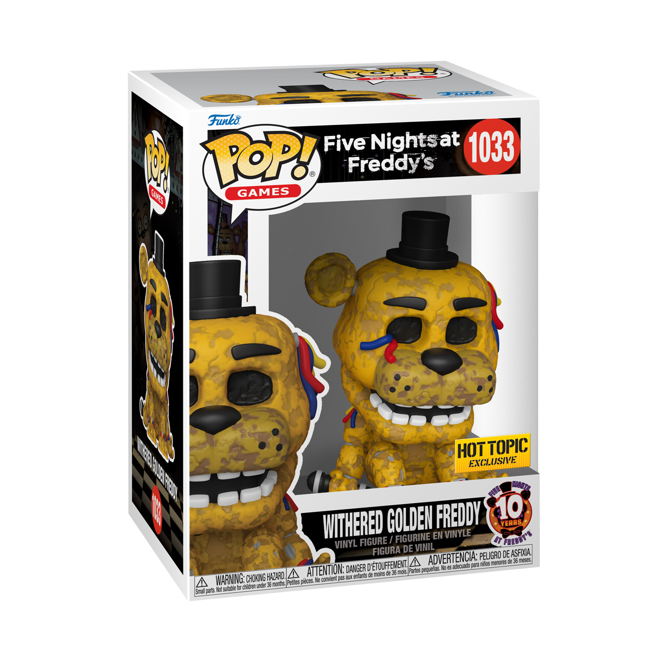 Give your collection a jumpscare with Pop! Withered Golden Freddy! Celebrate 10 Years of Five Nights at Freddy’s™ and complete your collection by closing in on this exclusive Pop! Withered Golden Freddy before he moves! Vinyl figure is approximately 3.9 in (9.9 cm) tall.