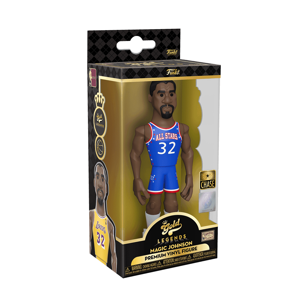 Score a slam dunk for your National Basketball Association collection with the new Funko GOLD Magic Johnson premium vinyl figure. This 5-inch tall collectible of Magic Johnson has him dressed in his yellow Los Angeles Lakers uniform. GOLD is the perfect way to commemorate some of your favorite, legendary NBA players in your collection, and each figure comes in a sleek, display-ready box that is easy to stack with other GOLD collectibles. There’s a 1 in 6 chance you may find the chase variant of Magic Johnson in his dark blue All-Star uniform. Vinyl figure is 5-inches tall.