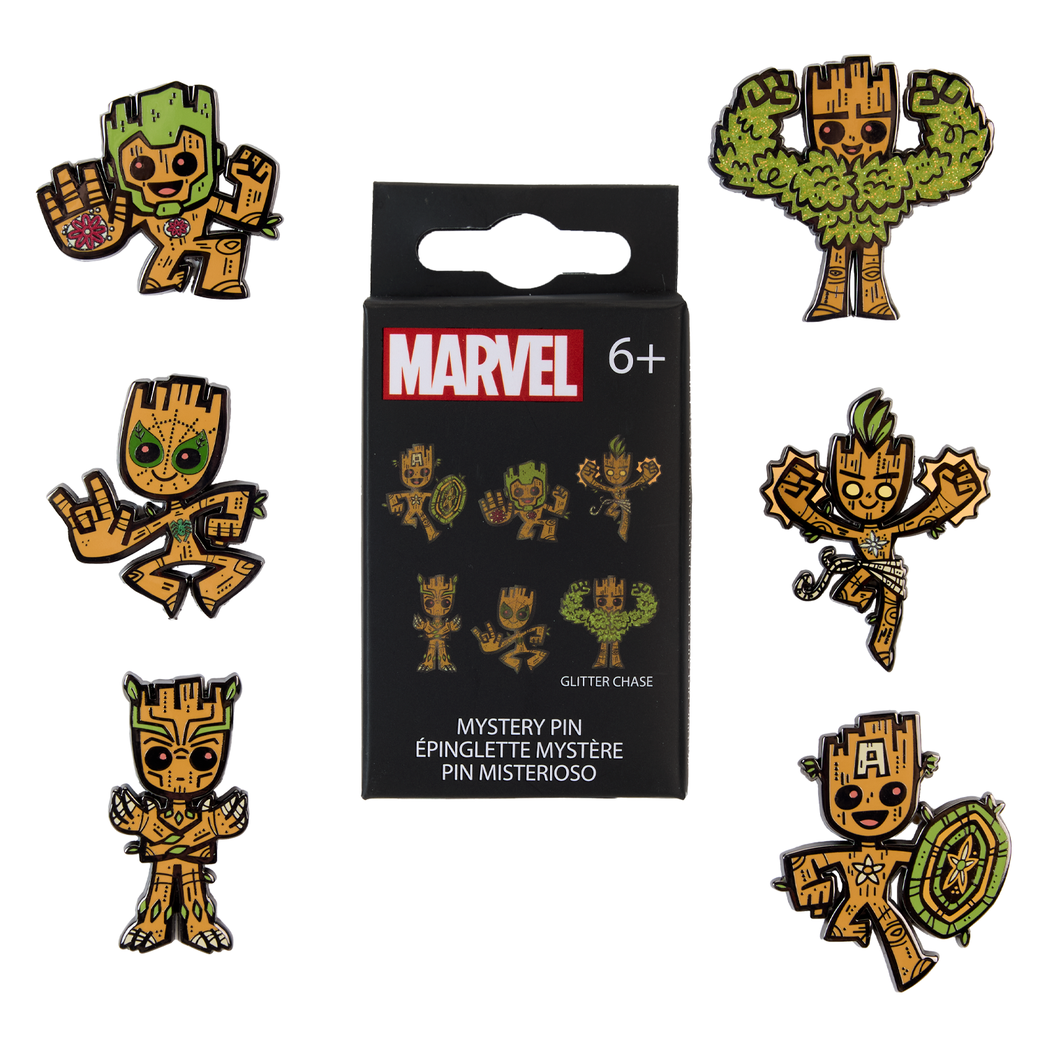 There is a 1 in 12 chance you may find the chase of Groot as the Hulk with glitter enamel fill. These pins are sure to add a touch of stylish fun to your favorite Marvel outfit or accessory. Pins are sold individually and blind. Collect all 6.