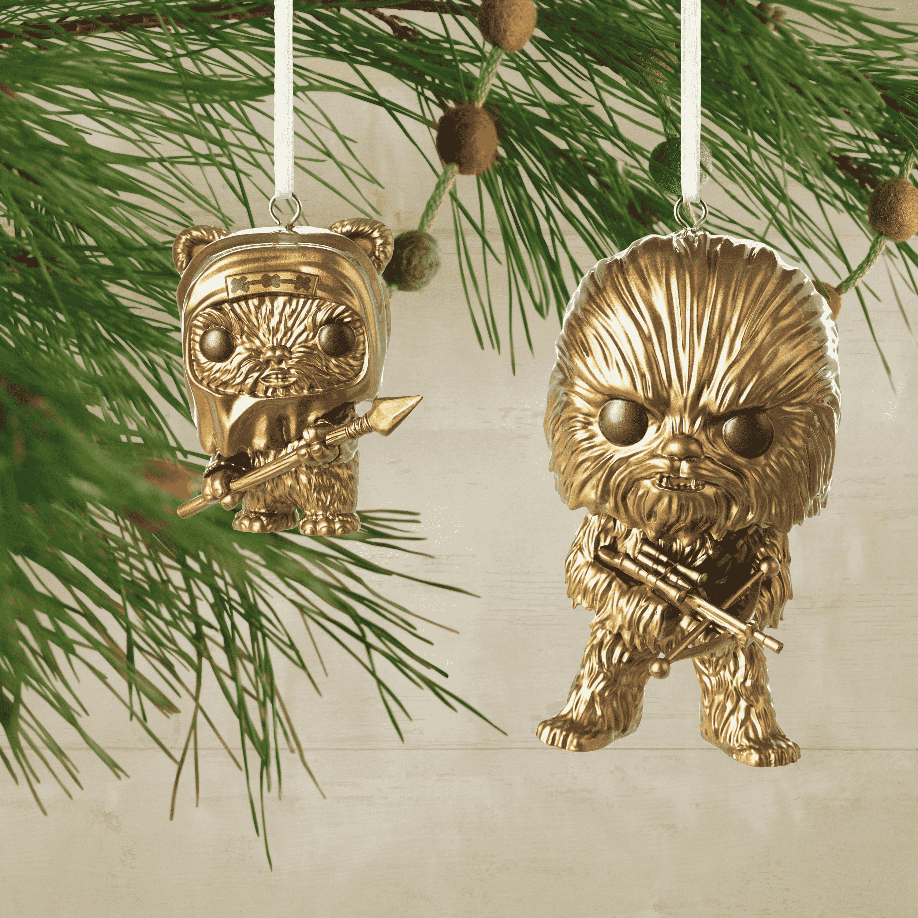 Add a dash of pop culture to your holiday décor with a Funko Pop! Ornament Chewbacca™ and Wicket™. Collect and display this stellar duo as a seasonal setup, or gift this collectible ornament to someone who wants to expand their Star Wars™ collection. Funko Pop! Ornaments make great Secret Santa gifts too, since there’s a variety of pop-culture themed character ornaments to choose from, which appeal to a wide variety of pop-culture interests.