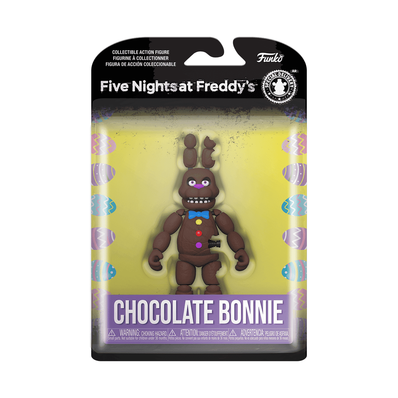Will your collection survive the addition of this Five Nights at Freddy's Chocolate Bonnie action figure? Bonnie may seem sweet but don't be fooled. The rest of your FNAF figures will be happy to see him. Collectible action figure is approximately 6.25 in (15.9 cm) tall.
