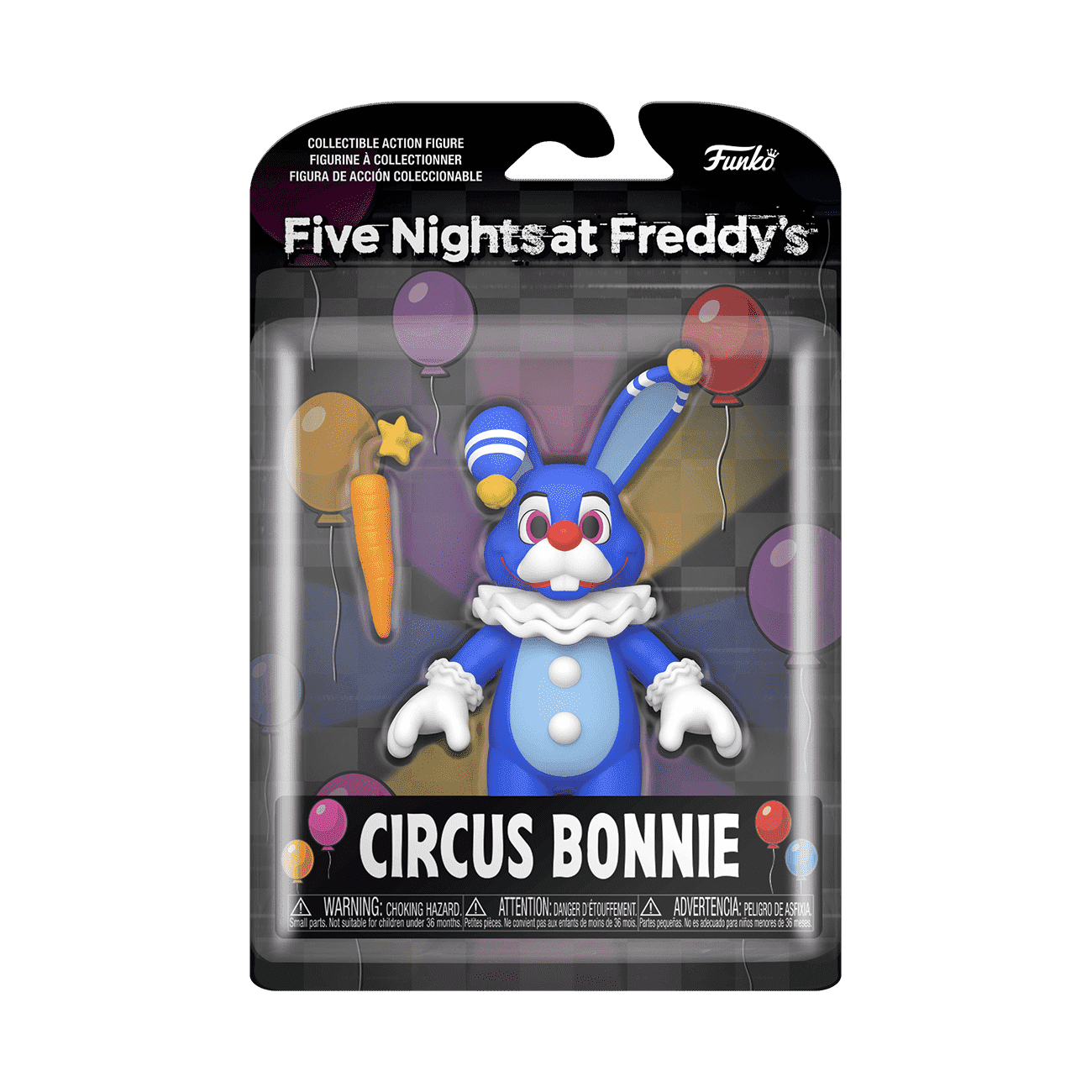 Close in on your favorite Five Nights at Freddy’s™ characters before they move! Catch Action Figure Circus Bonnie with carrot accessory from Five Nights at Freddy’s: Balloon Circus in action. Will your collection survive the addition of this Five Night's at Freddy's character? Vinyl figure is approximately 5.25 in (13.3 cm) tall.