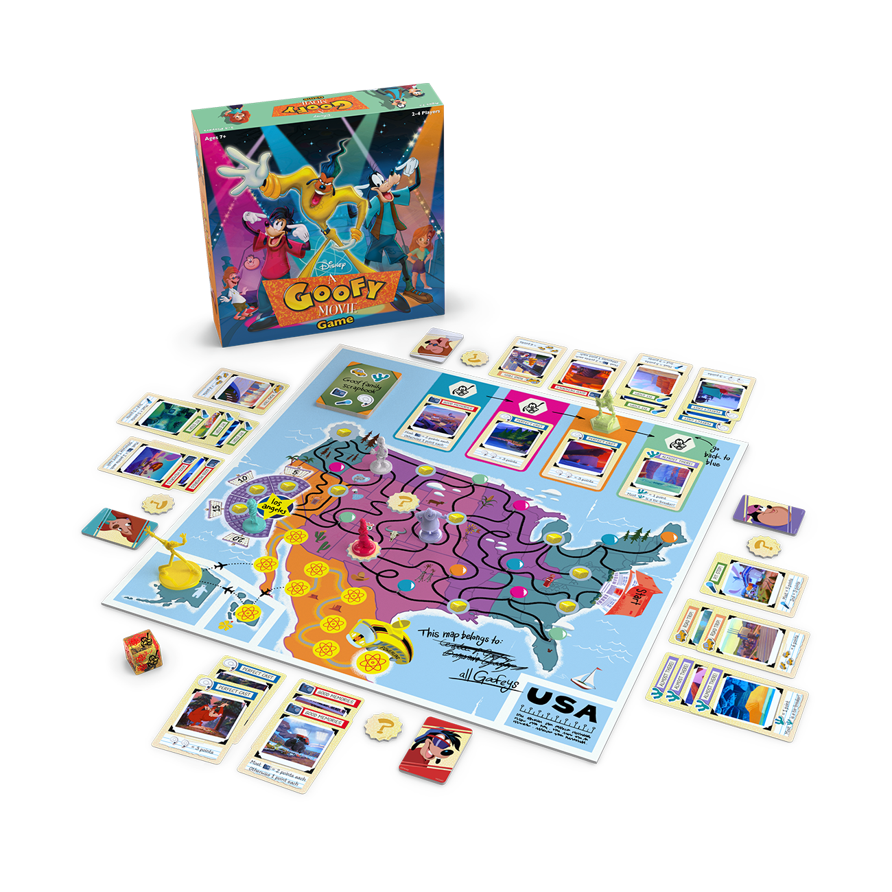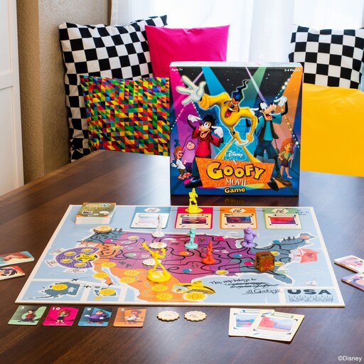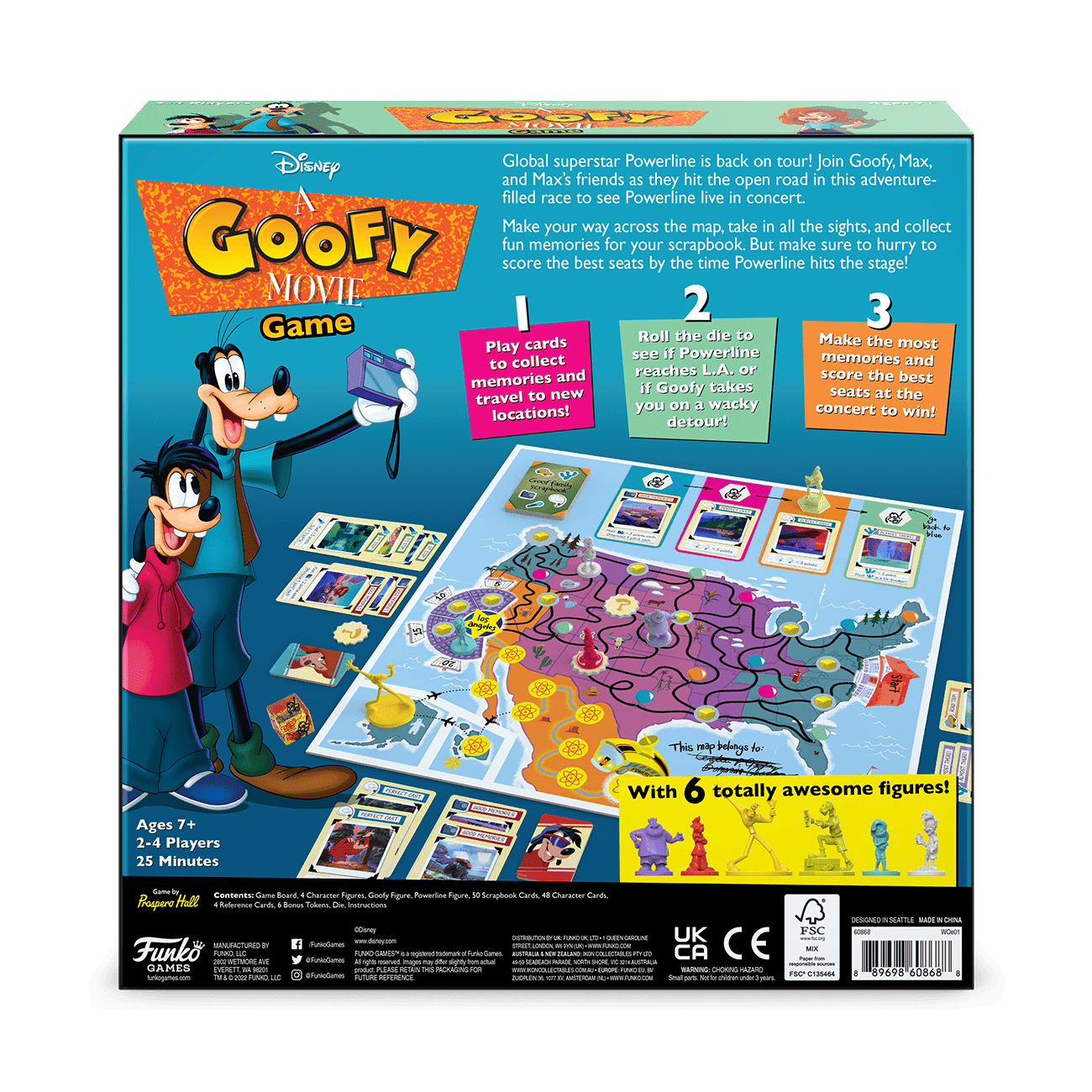 Play cards to collect memories and travel to new locations! Roll the die to see if Powerline reaches L.A. or Goofy takes you on a wacky detour! Make the most memories and score the best seats at the concert to win!