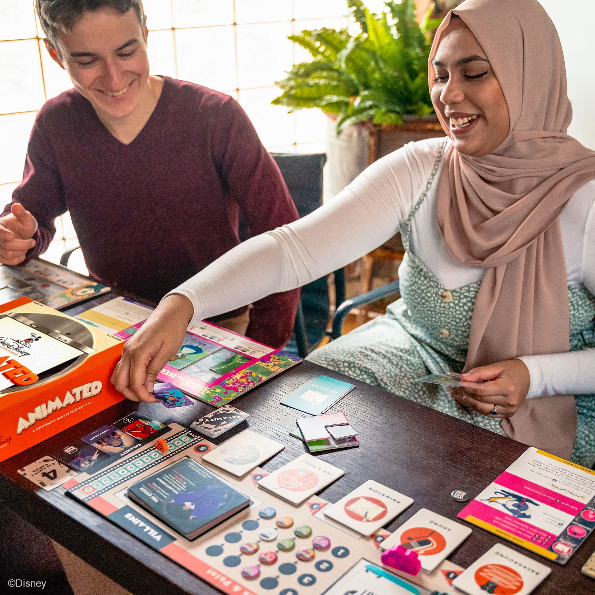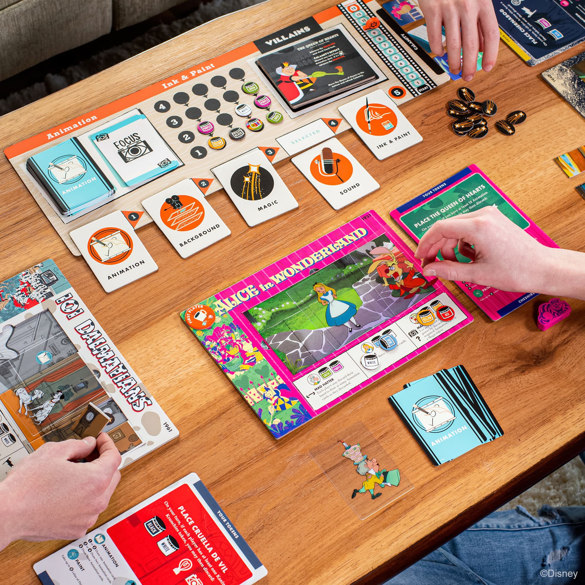 Work together like the team at the famous Walt Disney Animation Studios to create movie magic! Produce five classic Disney films using detailed background art, vibrant paint colors, and lively sound to bring cherished stories to life on the screen. But watch out! The infamous Villains of your feature films will rush your deadlines and create all the calamity they can. As a team, you’ll use the strengths of the Animation Studio—Heart, Focus, Inspiration, Grit, and Teamwork—to vanquish the Villains and finish your films in time!
