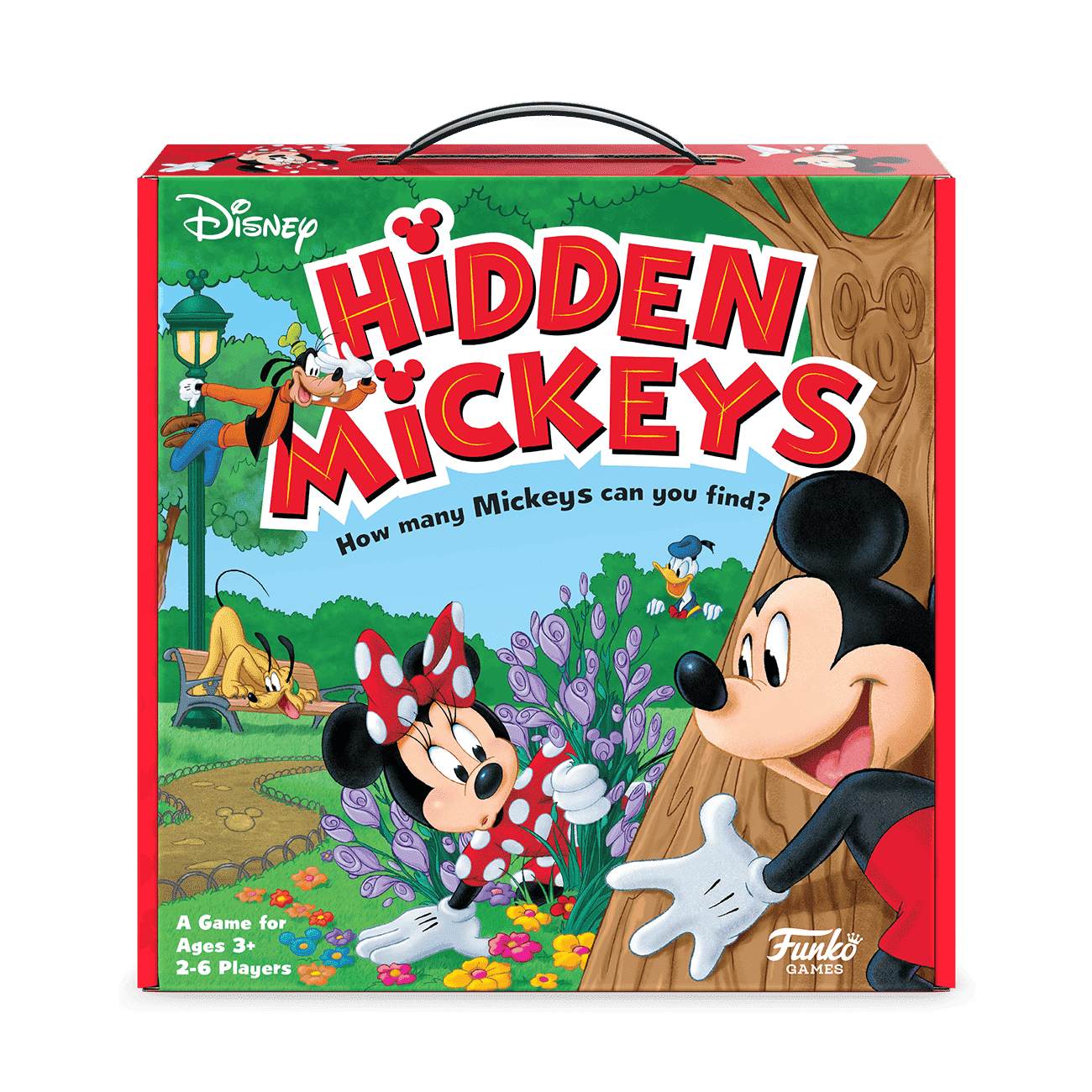The out-of-your-seat game with two ways to find Mickey! Play hide and seek with the colorful Mickey Markers, plus look for Hidden Mickeys on the cards! Two clever activities in one fun-filled game! On your turn, flip over a card from the pile. If you flip a Mickey card, one player hurries to find the matching Hidden Mickey Marker in the house or yard! Bring it back in time to score a card! Once all the Mickey Markers have been found, search for Hidden Mickeys on your reward cards! Find the most Mickeys to win!