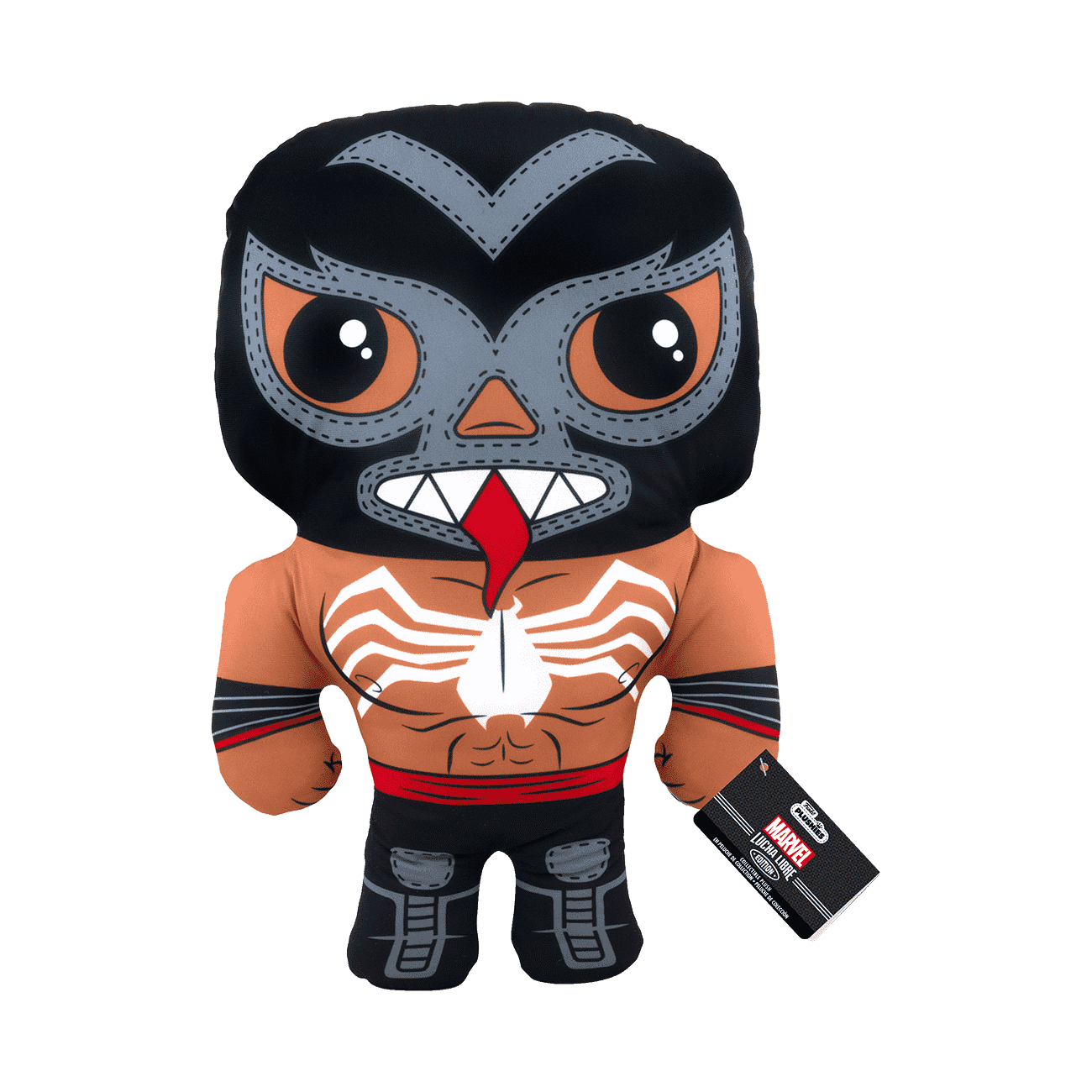 Marvel supervillain turned anti-hero Venom takes to the ring as a traditional luchador as plush Pop! El Venenoide. He's keeping his classic color scheme but dawning a new mask to take crime off the streets and settle things in the ring. Who will plush Pop! El Venenoide face in your Marvel Lucha Libre collection. Plush is approximately 17.5 in (44.5 cm) tall.