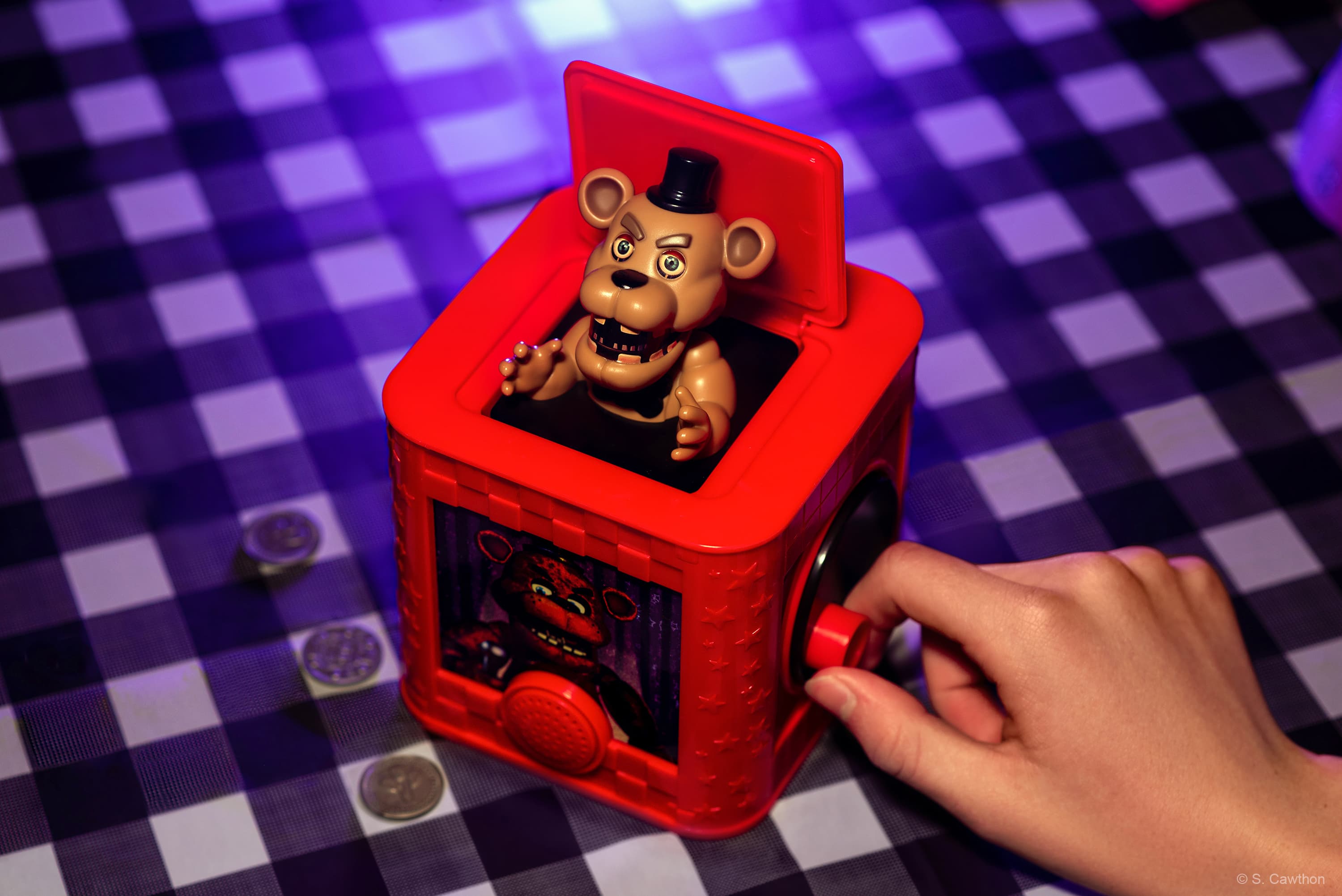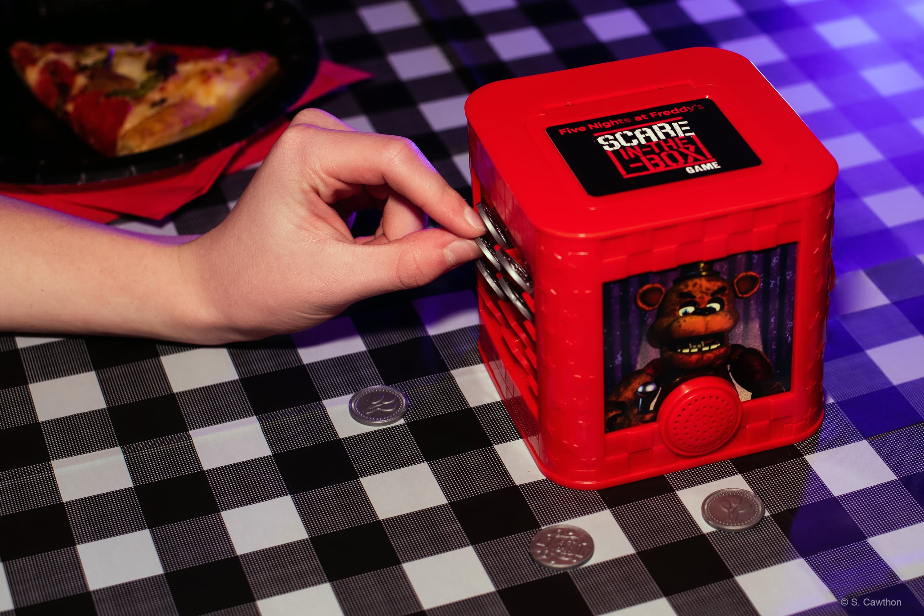 Beware the scare! Push your luck and try to survive in this exciting game inspired by the smash-hit series. Turn the crank as far you dare... but if Freddy pops out, you’re captured! Whether you pass the box or take a risk, Scare-in-the-Box will have you laughing with fear!