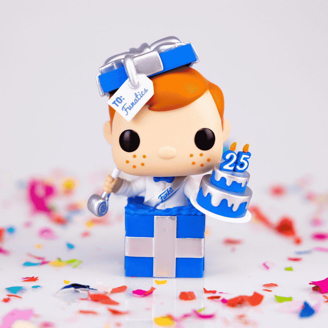 If there's one thing you should know about Freddy, it's that he's a fan of everything, especially parties! Join Freddy Funko in celebrating 25 years of fun with the Freddy Funko 25th Anniversary Mystery Box! This bundle features 6 Pop! figures, including Pop! Anniversary Freddy and an assortment of exclusives and mainline collectibles. This Pop! Anniversary Freddy is ready to surprise your collection with a delicious slice of cake as he pops out of a present labeled “To: Funatics.” What other surprises will you find in this Funko Web exclusive Mystery Box? Vinyl figures are approximately 4 in (10.2 cm) tall.