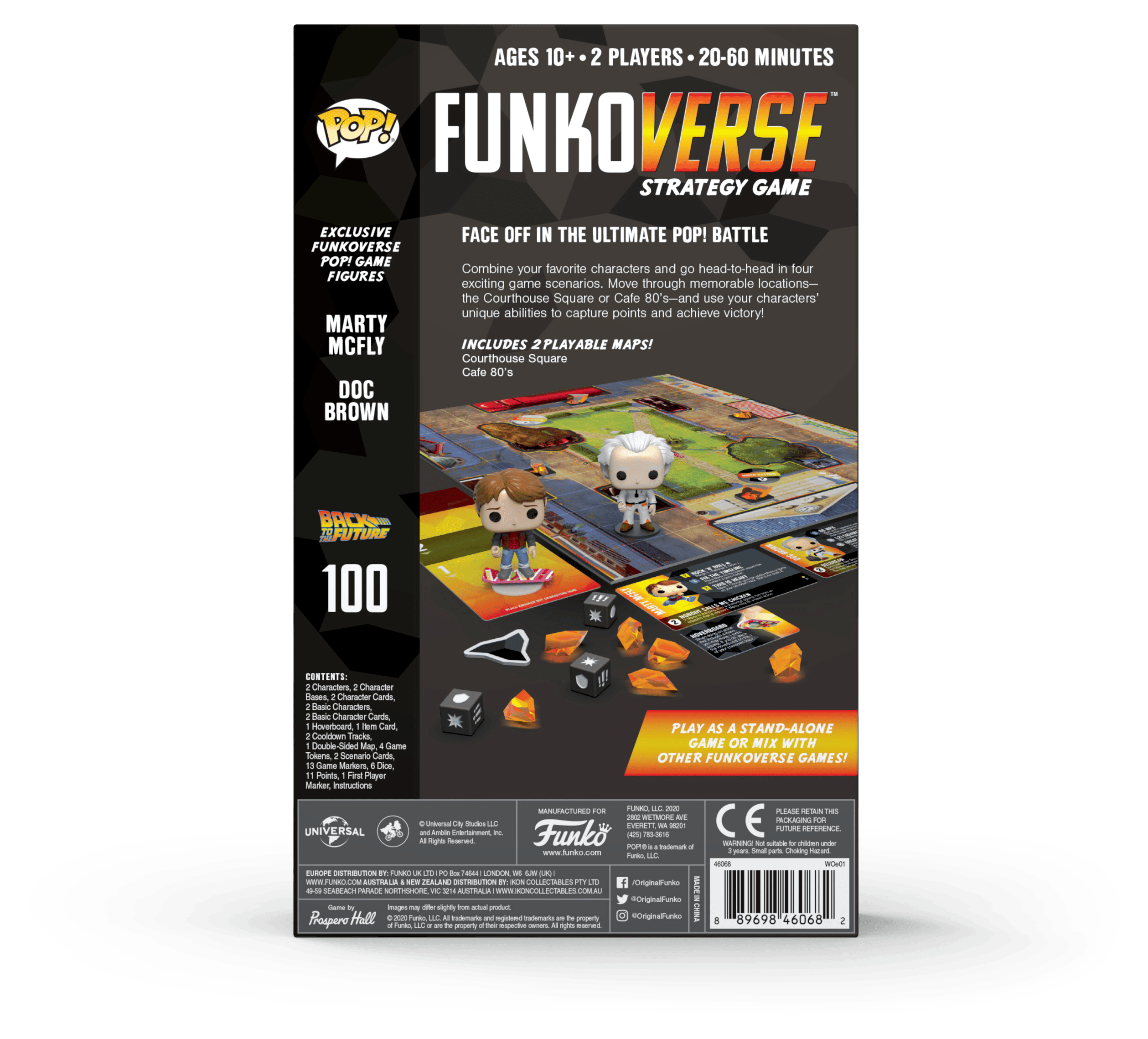 - Includes: 2 playable maps – Courthouse Square and Café 80’s, as well as 2 exclusive Funkoverse Pop! Game figures.