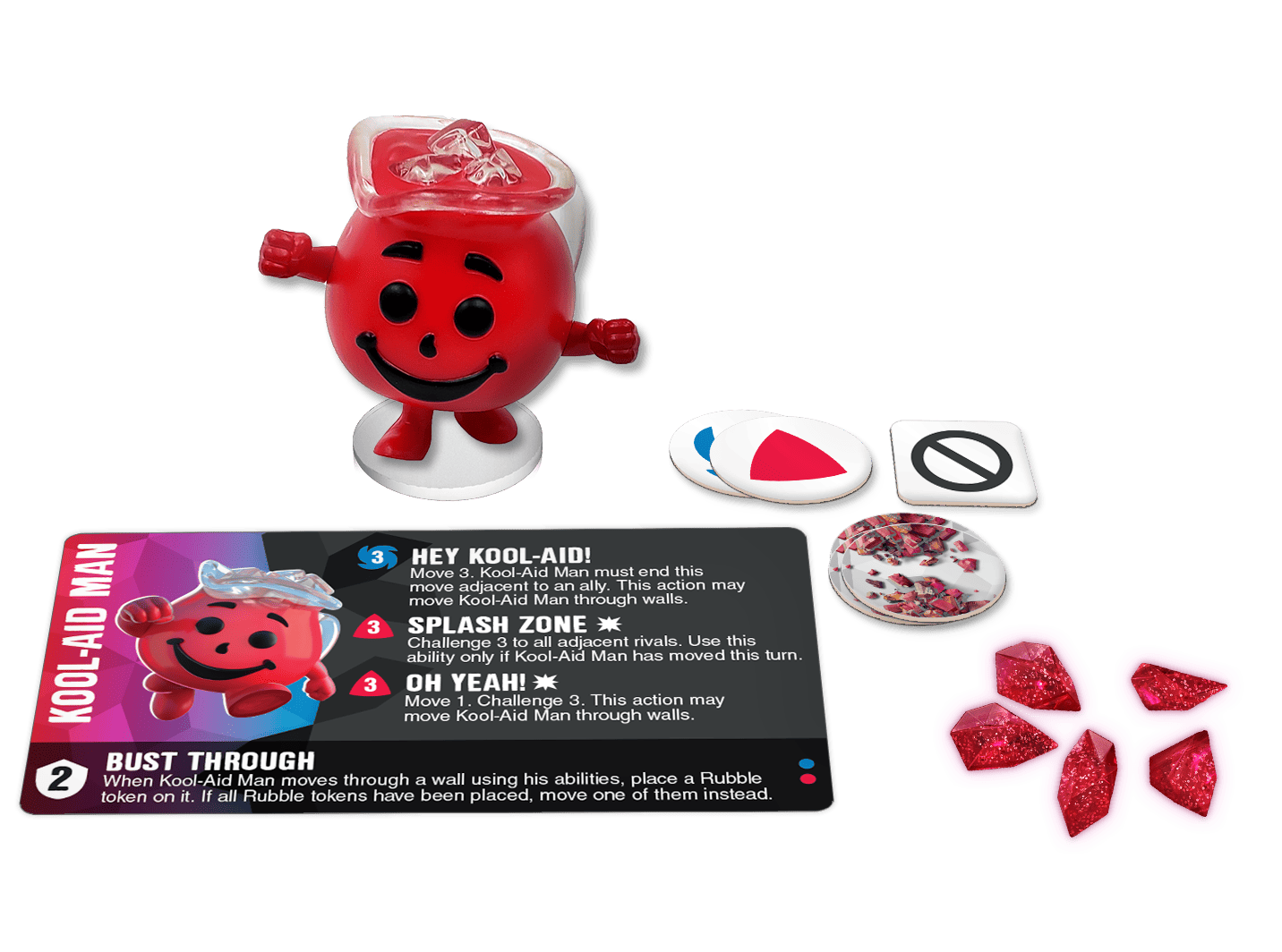 He’s heard the call. Kool-Aid Man bursts onto the Funkoverse scene! Though this expansion does not play on its own, Kool-Aid Man is compatible with all of the main and Expandalone Funkoverse games, and makes a formidable team member who is not limited by the pathways of the board. Combine Kool-Aid Man with your chosen Funkoverse set and hope no one gets splashed during close-quarters combat.