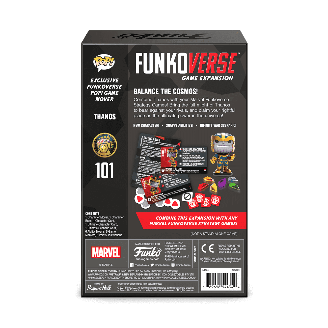 The Funkoverse Strategy Game combines your favorite characters in head-to-head, exciting game scenarios. Expand your existing Funkoverse game sets with a brand new character and a game mode that can be used on any existing Funkoverse map! Play with Thanos alongside other Funkoverse characters, or power him up in Ultimate Mode for the ultimate Funkoverse experience. Funkoverse uses an innovative “cooldown” system — the more powerful the ability, the longer it will take for the ability token to become available again — so players have to spend their ability tokens wisely. Each character in Funkoverse is unique, so players are encouraged to try out different combinations of characters and items in order to discover their favorite synergies and powerful strategies for the different game scenarios.