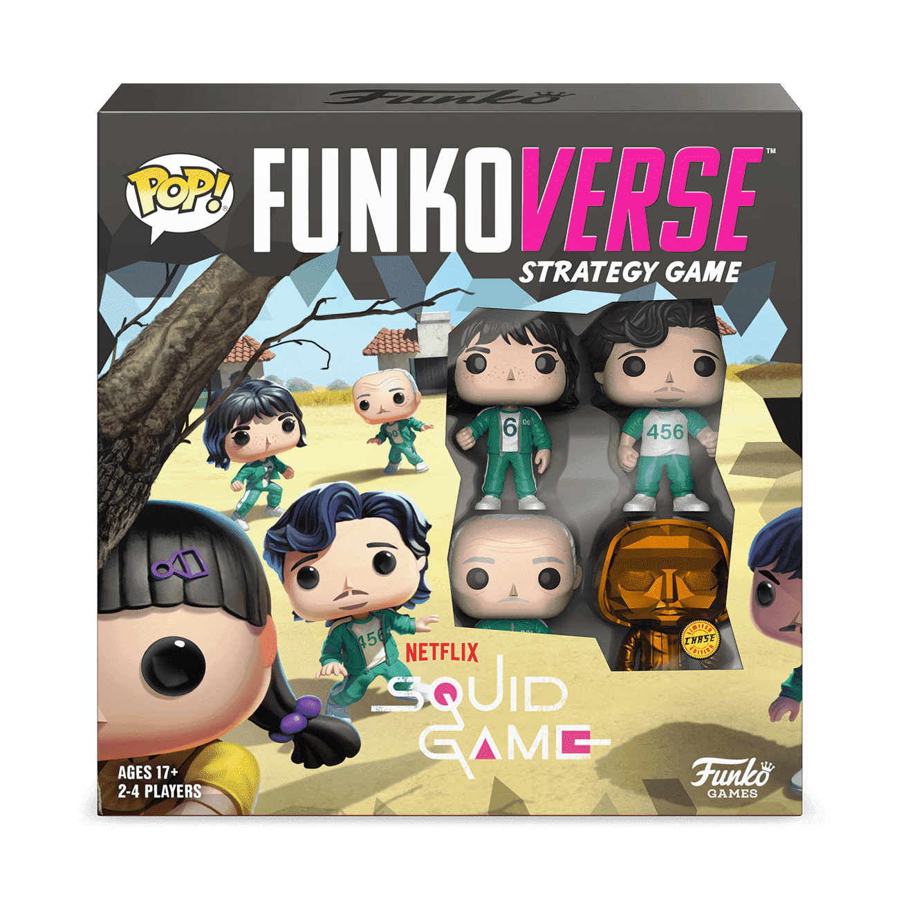 - Includes four exclusive Squid Game Funko Pop! figures found only in this game! Each figure is a unique, playable character with their own abilities! There is a 1 in 4 chance you will receive a special chase version!