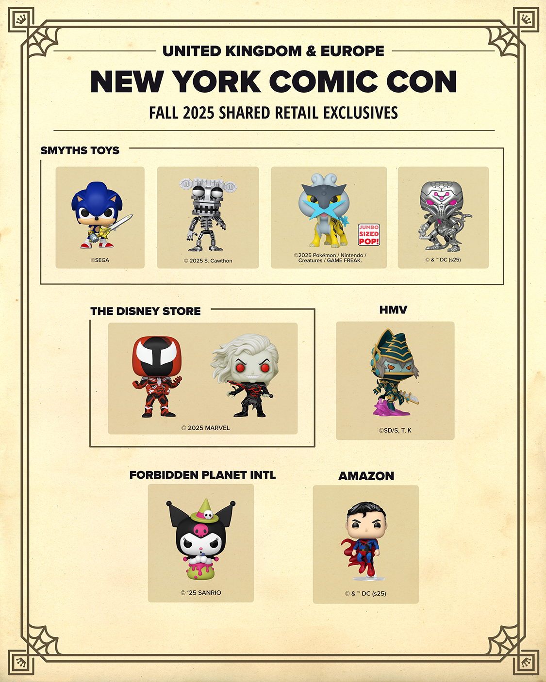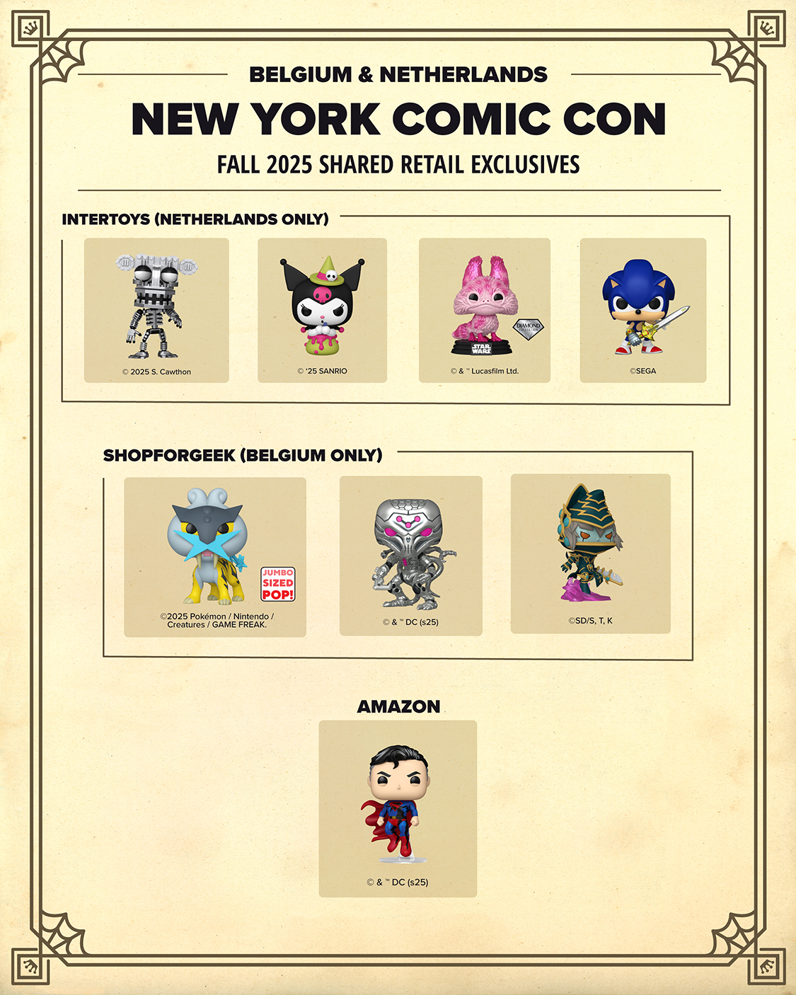 NYCC exclusives will be available on Funko.com at 4pm BST on Thursday, October 9th, 2025. There will not be a lottery to purchase event exclusives on Funko.com. There will be a waiting room at checkout to serve customers on a first come, first served basis.