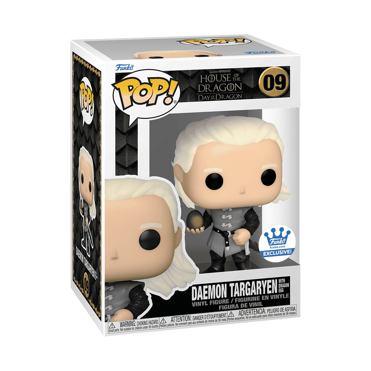 Welcome to the Dance of Dragons! The pursuit of legacy begins, and Funko exclusive Pop! Prince Daemon, dragon egg in hand, is coming to defend the Targaryen dynasty. Bring Pop! Prince Daemon with Egg home to expand your Game of Thrones: House of the Dragon collection. Vinyl figure is approximately 3.86 in (9.8 cm) tall.