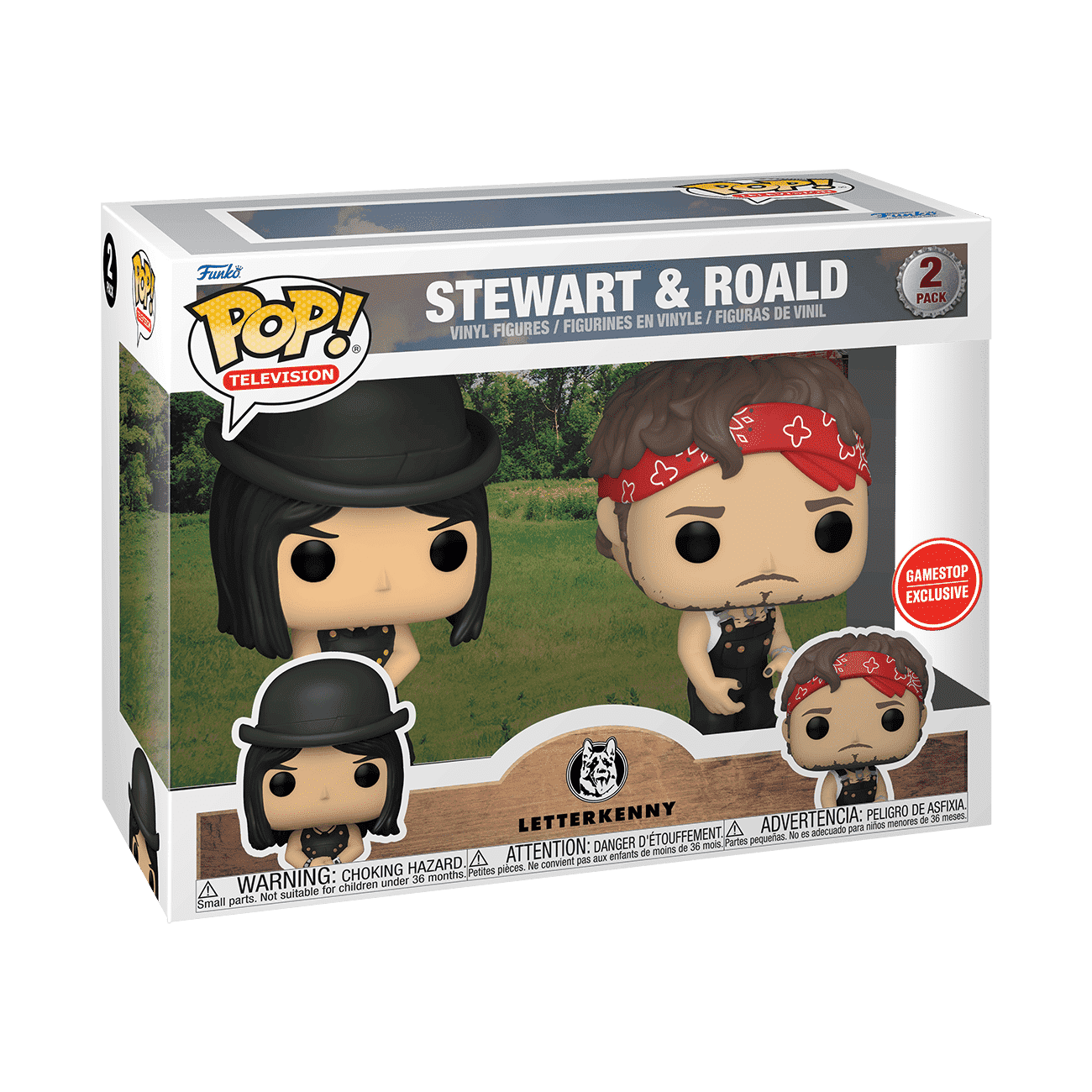 Run with the Skids crew of Letterkenny with this GameStop exclusive 2-Pack of Pop! Stewart and Pop! Roald. Unite them with the other members of the Skids and let them dance it out in all the parking lots in town. Vinyl figures are approximately 4 in (10.2 cm) tall.