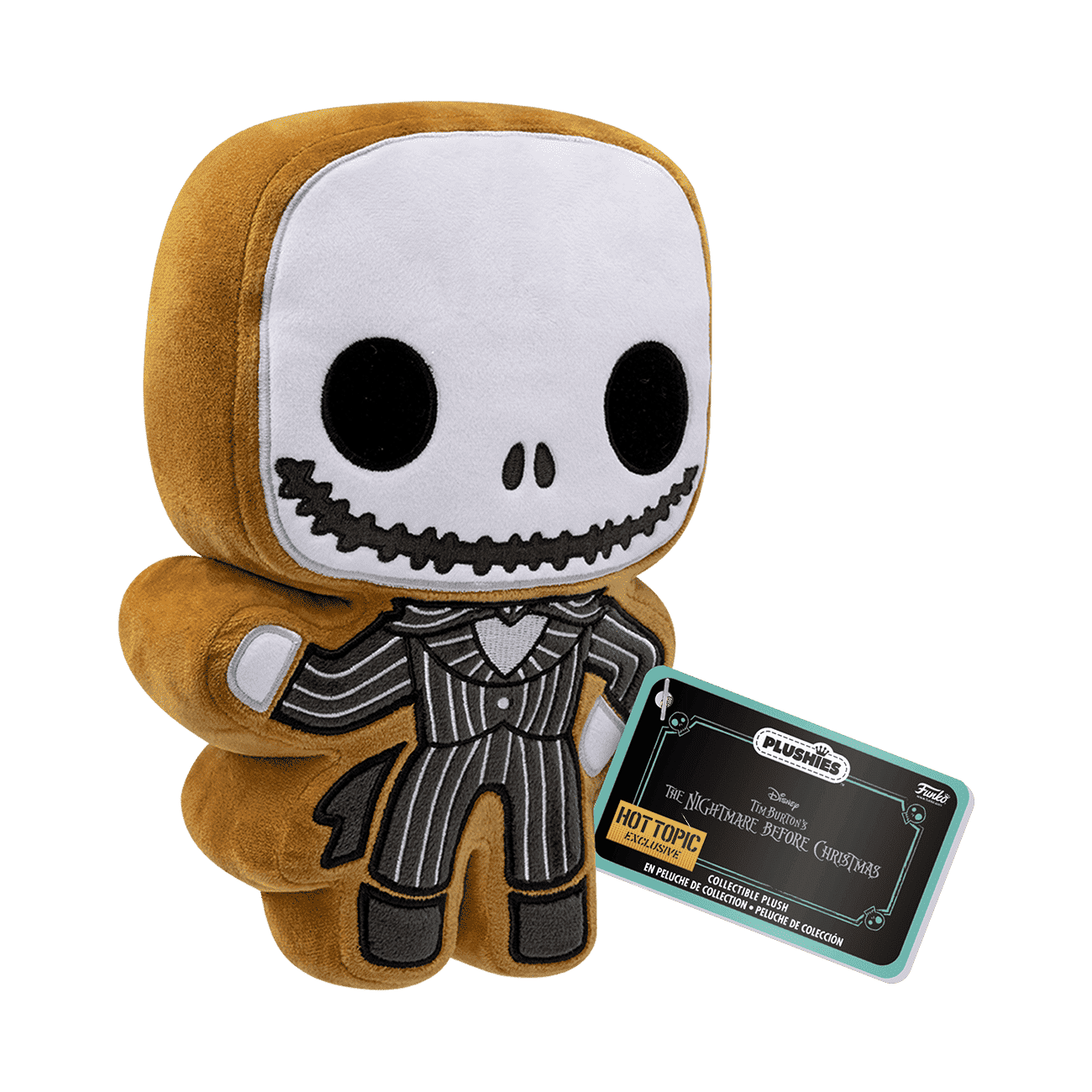 Sweet dreams! The Pumpkin King wants to join your collection as an exclusive Funko Plush Gingerbread Jack Skellington. Help this collectible plush turn terrifically nightmarish screams into sugar-plum dreams. On the front of this plush, Jack Skellington comes to life in cookie icing detail, while the edges and back are soft, gingerbread brown. Bring home the adventures of Disney Tim Burton’s The Nightmare Before Christmas. Collectible plush is approximately 10 in (25.4 cm) tall.