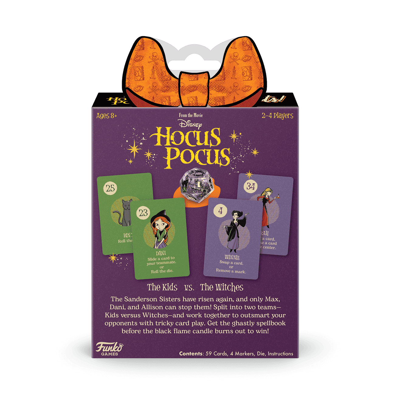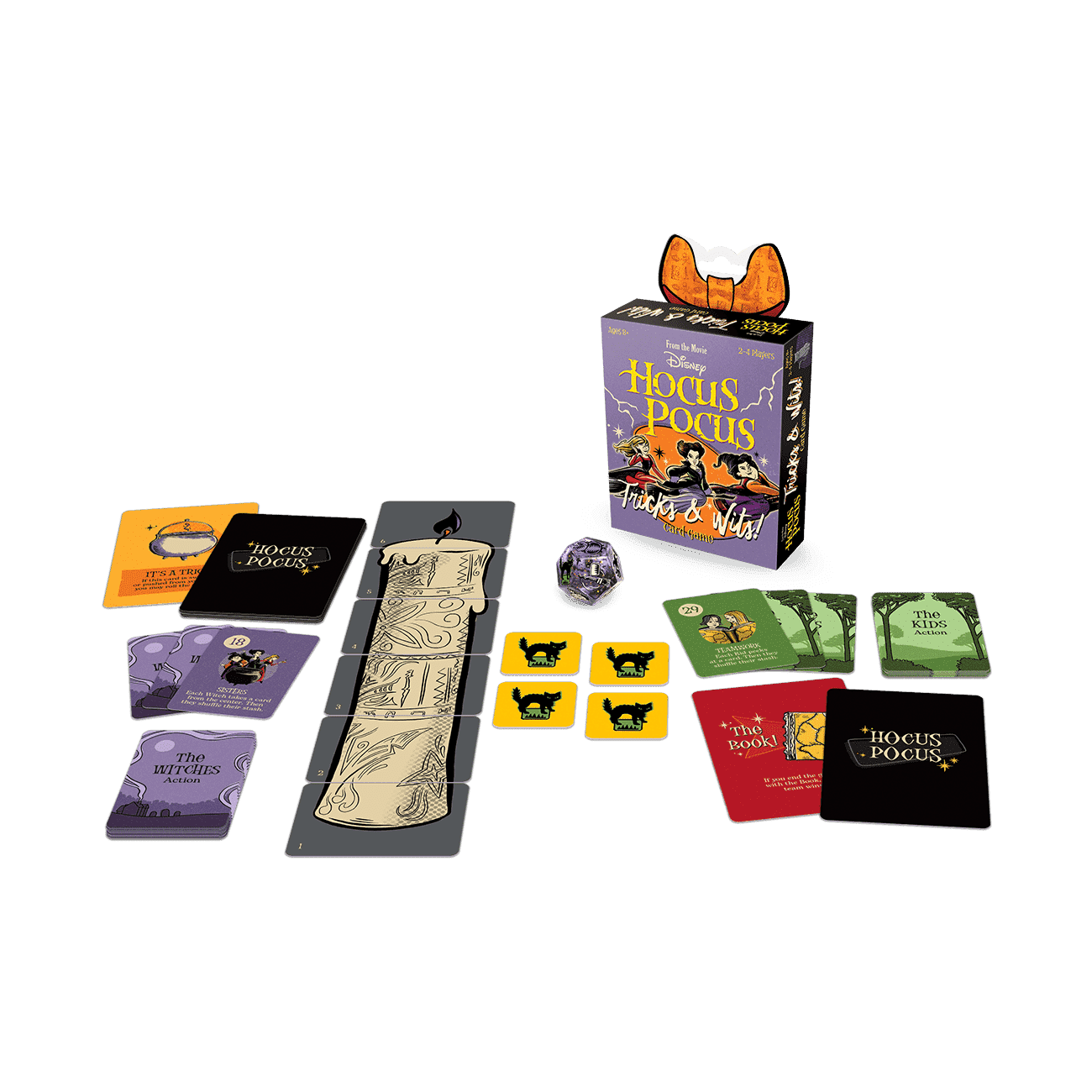 Hocus Pocus Tricks and Wits! Card Game Disney Hocus Pocus Tricks & Wits Card Game The Sanderson Sisters have risen again, and only Max, Dani, and Allison can stop them! Split into two teams—Kids versus Witches—and work together to outsmart your opponents with clever card play. Get the ghastly spellbook before the black flame candle burns out to win!