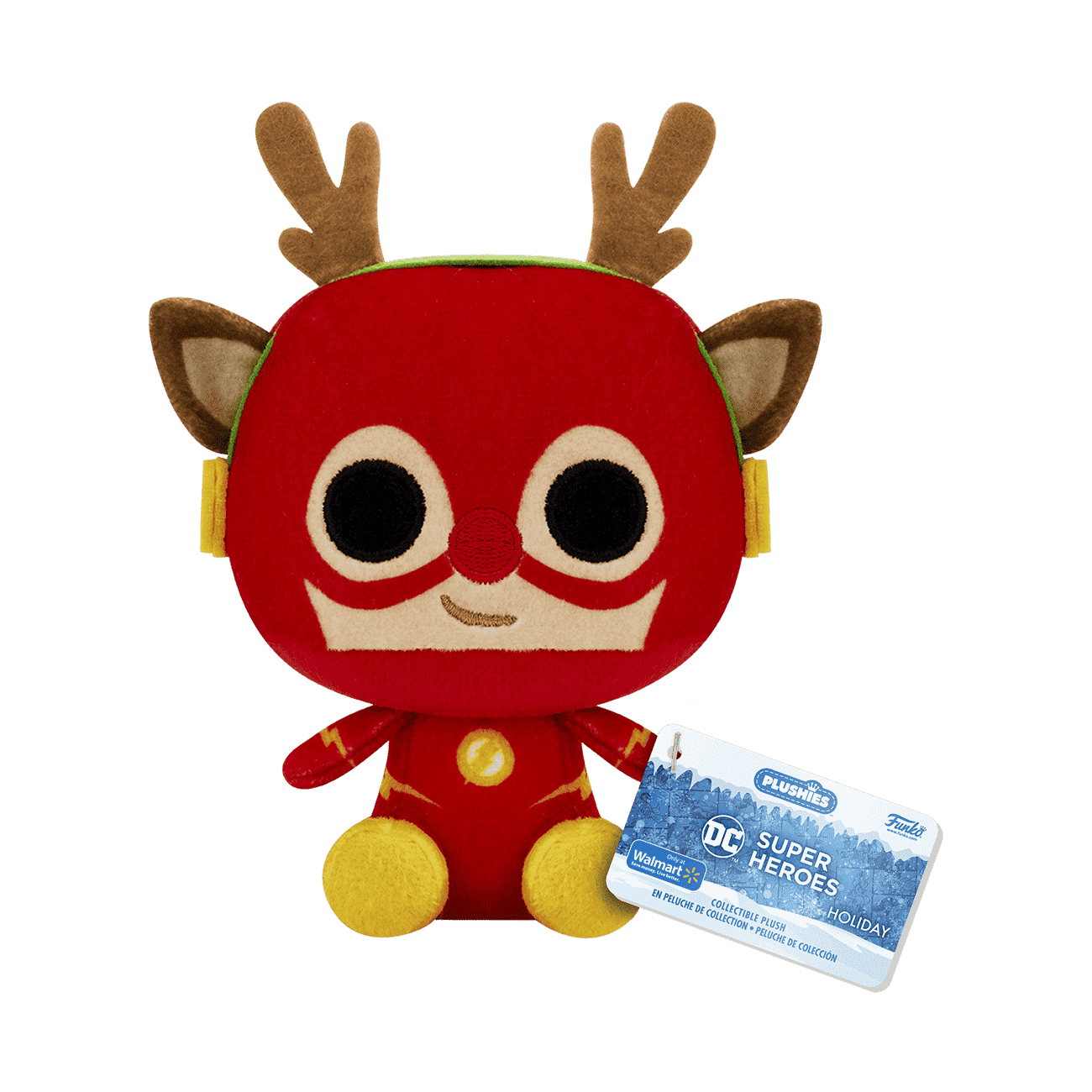 Crush the holiday rush with a cuddly DC Super Heroes The Flash™ Plush. The Flash, as a plush collectible, wears antlers, and is ready to speedily deliver presents in the nick of time. Squeeze in some festive fun this holiday season and expand your DC Super Heroes set. Collectible plush figure is approximately 4 in (10.2 cm) tall.