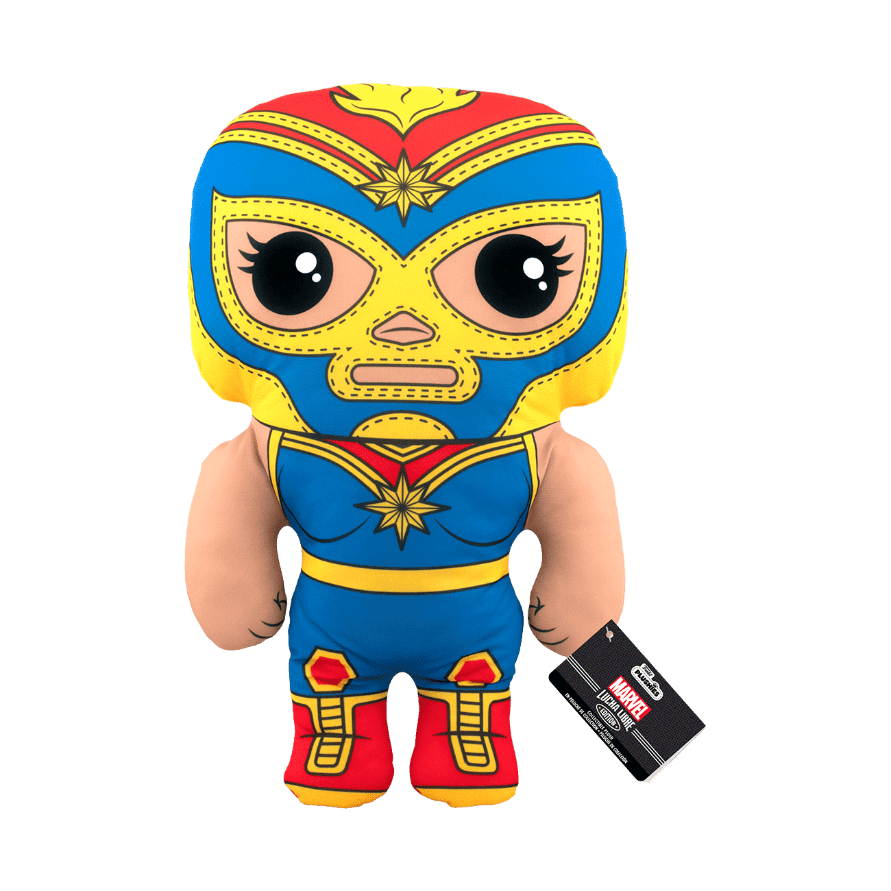 Marvel super hero Captain Marvel takes to the ring as a traditional luchador as plush Pop! La Estrella Cósmica. She's keeping her classic color scheme but dawning a new mask to take crime off the streets and settle things in the ring. Who will plush Pop! La Estrella Cósmica face in your Marvel Lucha Libre collection. Plush is approximately 17.5 in (44.5 cm) tall.
