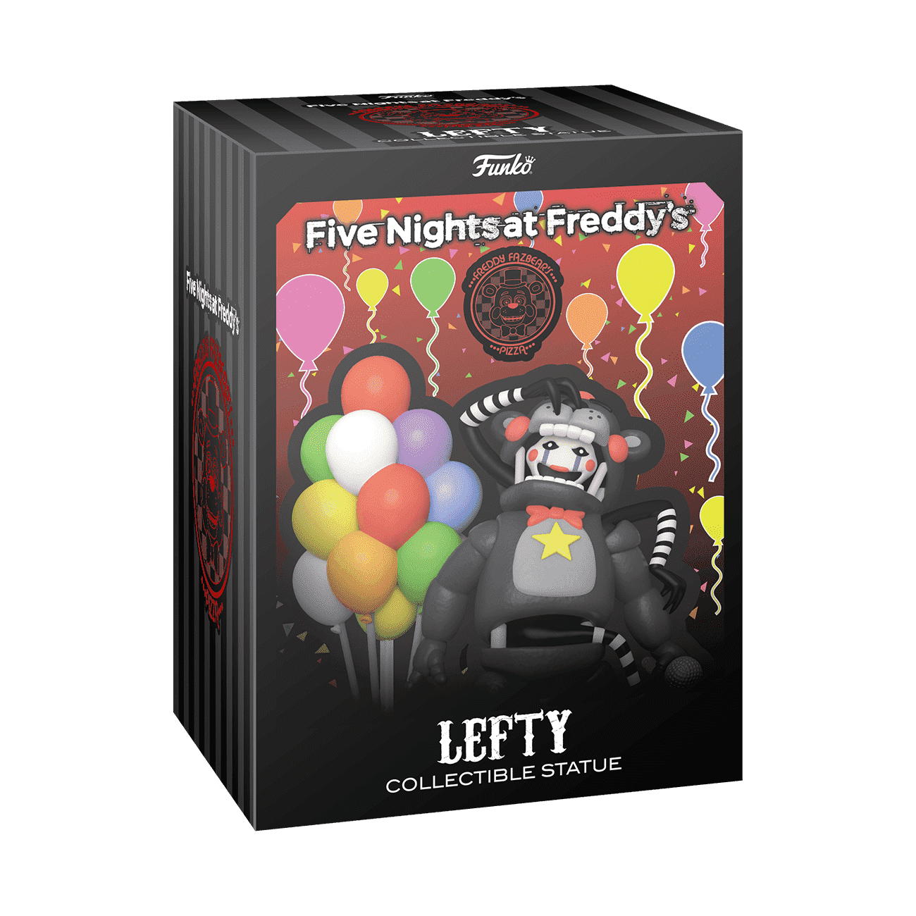 Survive the night at Freddy Fazbear’s Pizza with a Five Nights at Freddy’s™ Lefty Statue. The collectible statue of Lefty shows him unleashing the Puppet from within. Catch him before he moves any farther! Collectible vinyl statue is approximately 11.86 in (30.1 cm) tall.