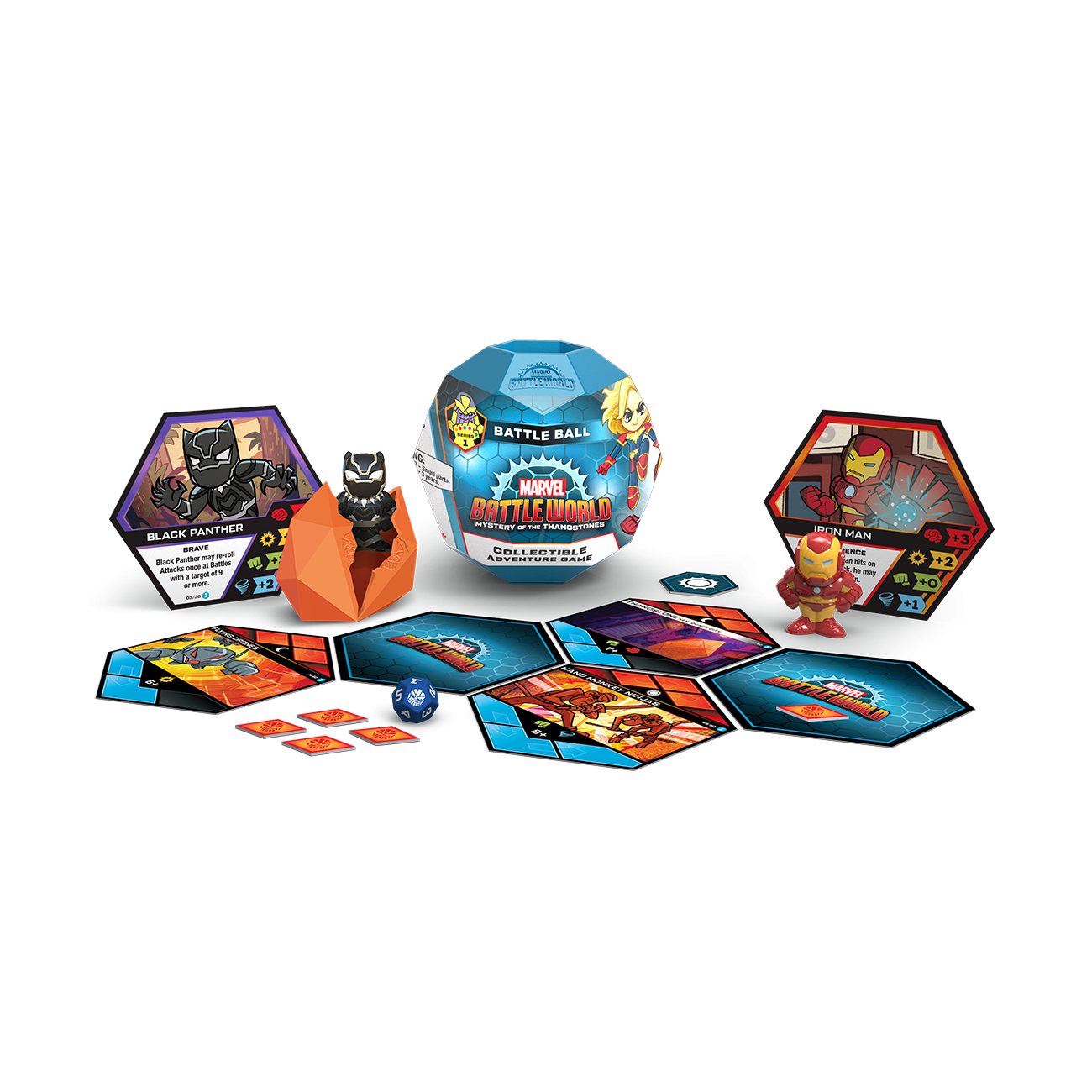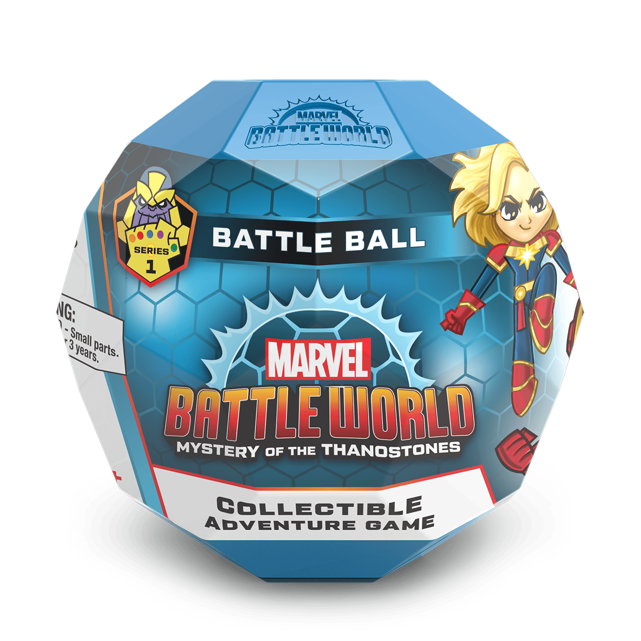 Battleworld is a cooperative, expandable, collectible adventure game featuring dozens of characters from all over the Marvel Universe -- Collect all the Heroes to complete your set! Each Marvel Battleworld Battle Ball comes with one collectible Hero and one mystery Hero inside a Thanostone. Build your team and start battling across Battleworld to break more Marvel Multiverse heroes out of the mysterious Thanostones. Unique team-based or solo gameplay allows players to jump in to Battleworld right away! Launch series includes 30+ unique characters including rare variants!