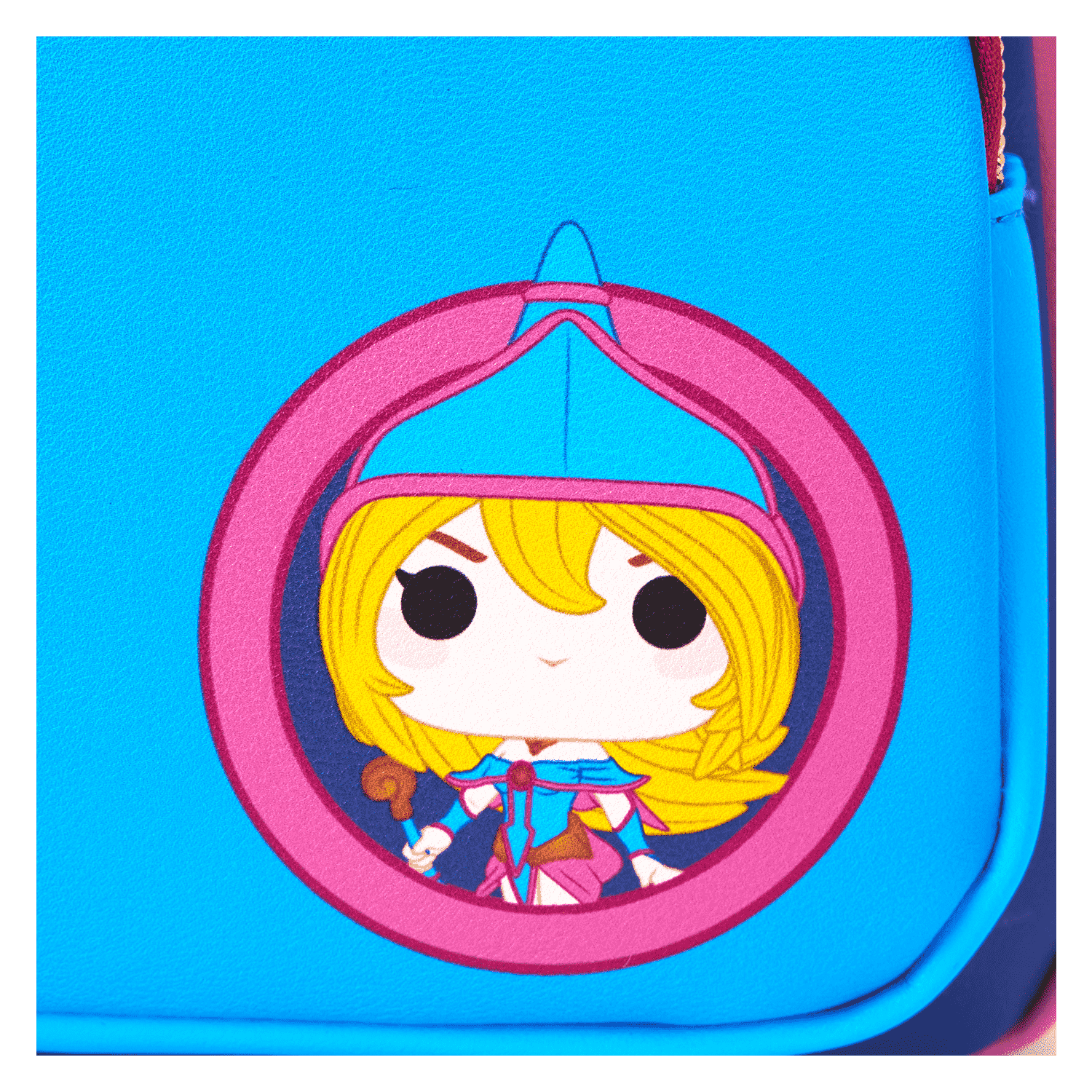 Prepare to duel in style with the Yu-Gi-Oh! Dark Magician Girl Funko Mini Backpack! The front pocket of this pink and blue mini backpack features POP! Dark Magician Girl in a round, pink frame. Turn the bag around to find her making a second appearance as she wields her magic. This enchanting accessory has plenty of room for storing all of your dueling essentials on your way to the arena!