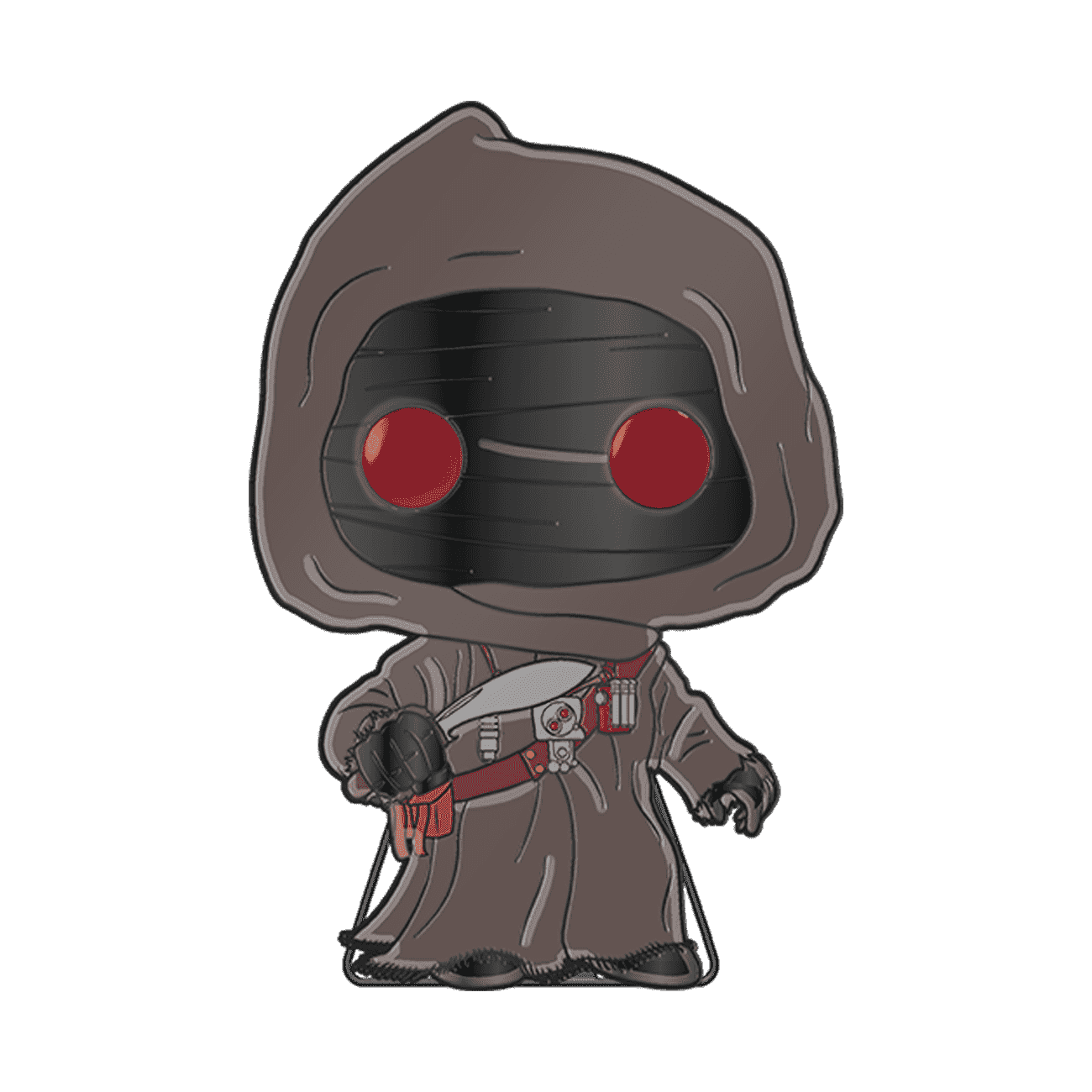 Celebrate the most stellar fandom of them all with the Loungefly Pop! Pin Offworld Jawa™! This creature is looking sell his wares in your Star Wars: The Mandalorian™ collection. This Pop! Pin features red, glow-in-the-dark enamel fill, 3D molded metal, black-colored hardware, and a built-in stand. Enamel pin is approximately 4 in (10.2 cm) tall.
