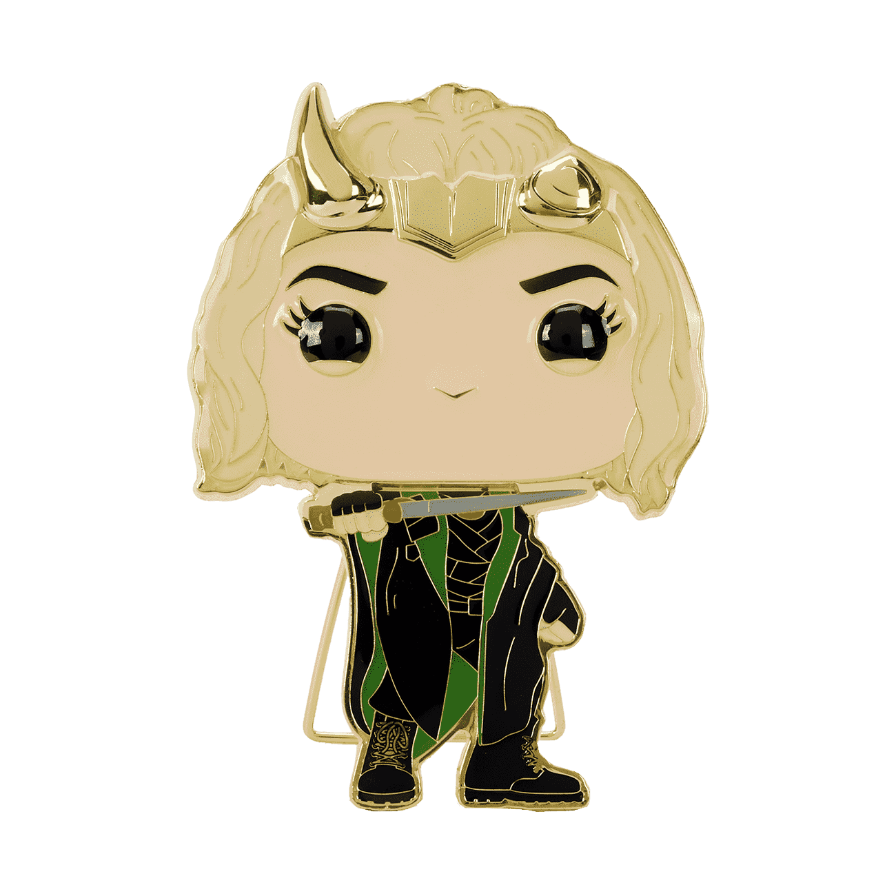 Loki’s plans took an unexpected turn when he stole the Tesseract. Bring the adventure home from Marvel Studios’ Loki television show with Pop! Pin Sylvie. Complete your Marvel lineup by adding this goddess of mischief to your collection. This Pop! Pin features glow-in-the-dark enamel fill, 3D molded metal, gold-colored hardware, and a built-in stand. Enamel pin is approximately 4 in (10.2 cm) tall.