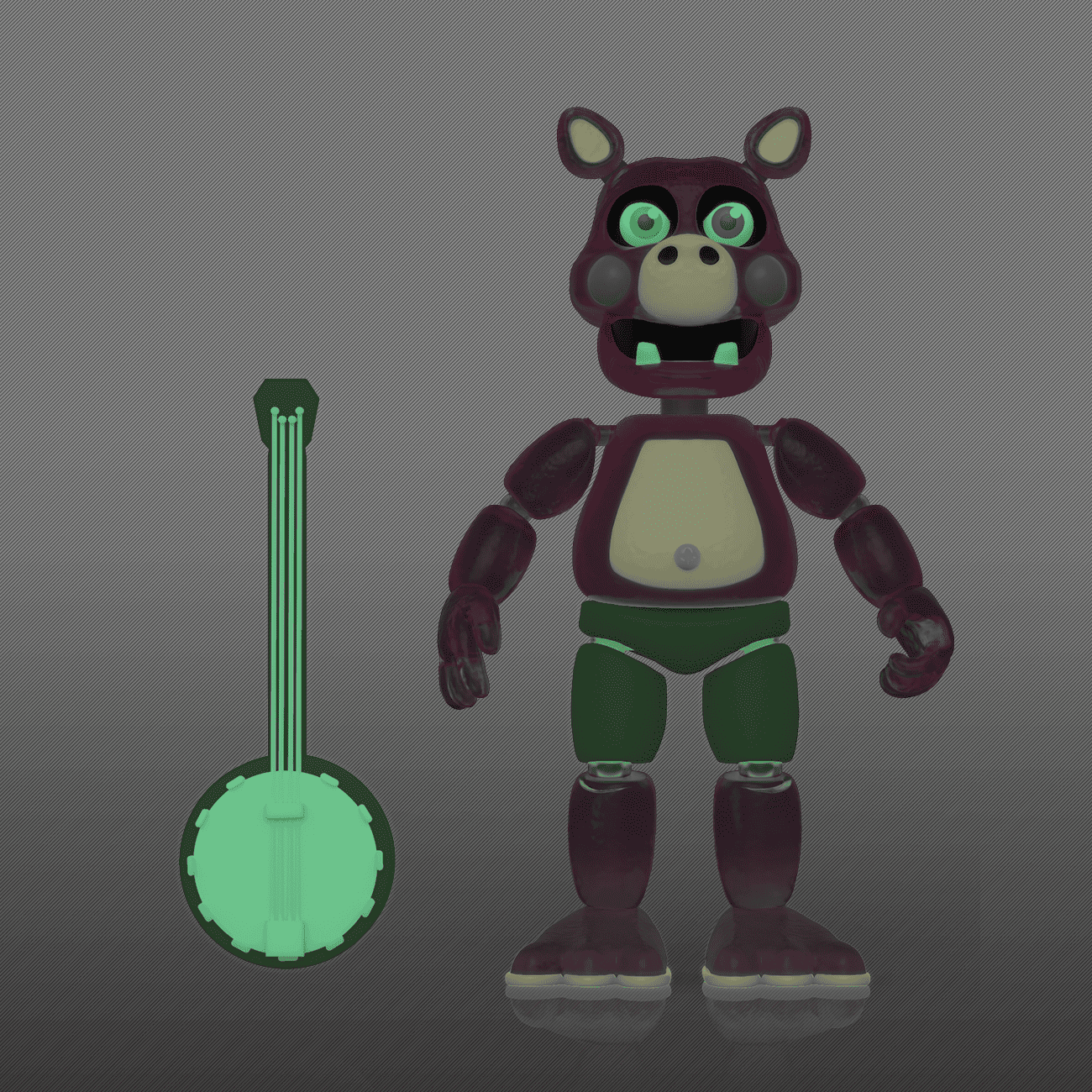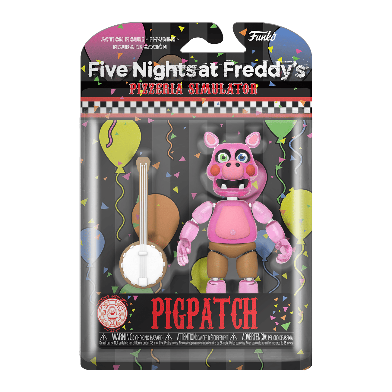 Will your collection survive the addition of this Five Night's at Freddy's Pigpatch glow-in-the-dark action figure? The rest of the FNAF Pizzeria Simulator figures will be happy to see him. Collectible action figure stands approximately 5 in (12.7 cm) tall, and glows in the dark.