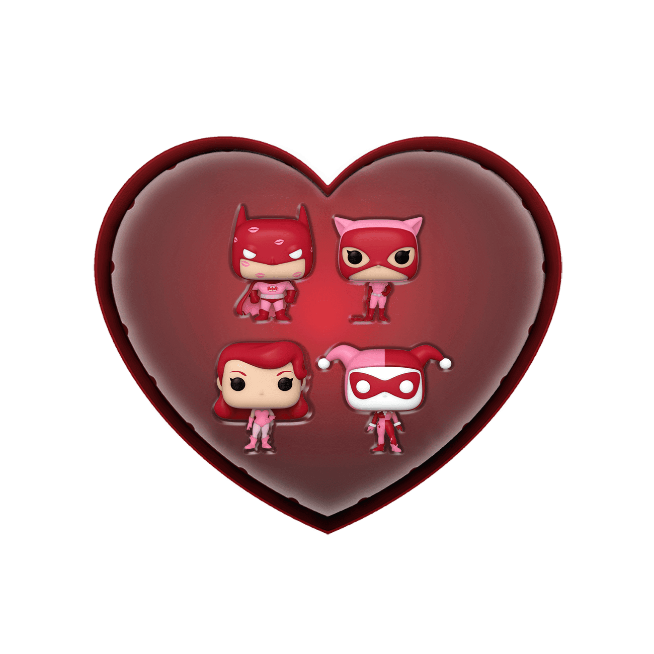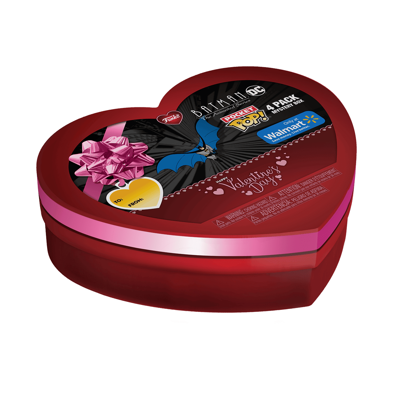 Surprise your Valentine with a Batman: The Animated Series 4-Pack Mystery Pocket Pop! Valentine! Packaged in a classic red and pink heart box, this mystery box will delight fans of Batman: The Animated Series while offering a fun, pop culture twist on Valentine's Day gift giving. Collectible vinyl figures are approximately 1.5 in (3.8 cm) tall.