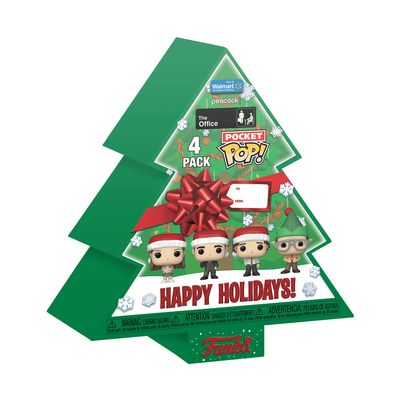 Throw a holiday bash the Dunder Mifflin Party Planning Committee will never forget with this Walmart-exclusive The Office Holiday 4-Pack. The Christmas tree-shaped box holds 4 Pocket Pops! of memorable characters, including Pam Peesly, Michael Scott, Jim Halpert, and Dwight Schrute. Hang the mistletoe, grab a Santa suit or two, and pour yourself a cup of good cheer. Make your days merry and bright re-creating your favorite scenes from The Office.