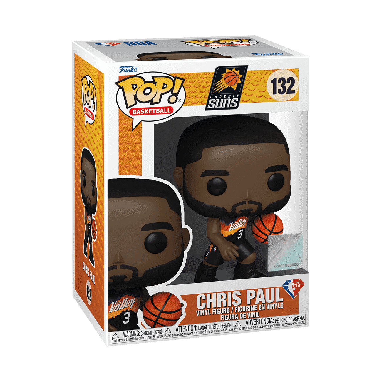 Step up your NBA collection with a 21-22 NBA City Edition Pop! Chris Paul in his Phoenix Suns uniform. Vinyl figure is approximately 4 in (10.2 cm) tall.