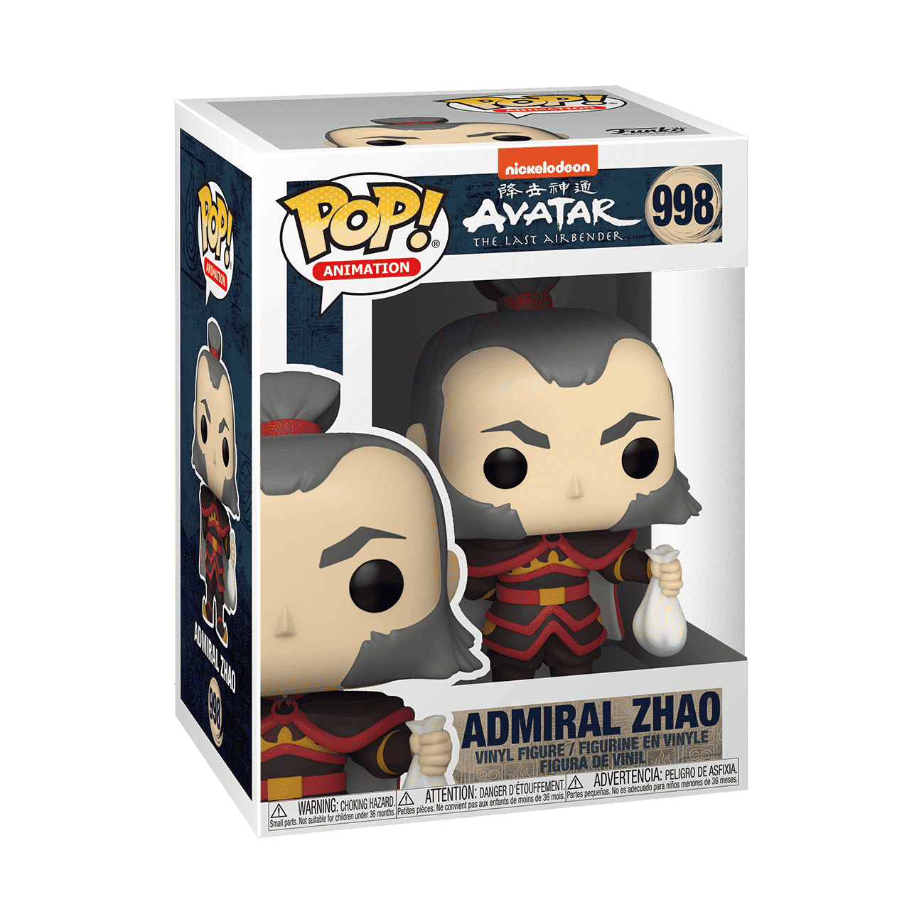 Admiral Zhao is also leading his own Fire Nation Navy expedition to capture the Avatar since he believes the banished Prince Zuko is incapable. Add Pop! Admiral Zhao to your collection of Avatar: The Last Airbender to complete the set. Vinyl figure is approximately 4.5 in (11.4 cm) tall.
