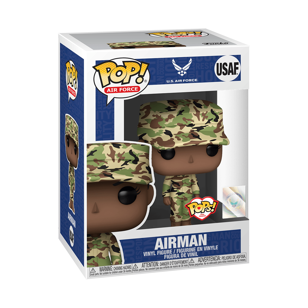 Thank you for your service. In honor of our troops and veterans, Funko has created a collection of Pop! vinyl figures to commemorate those who work hard to protect our nation. Pop! Airman vinyl figure is approximately 4 in (10.2 cm) tall.