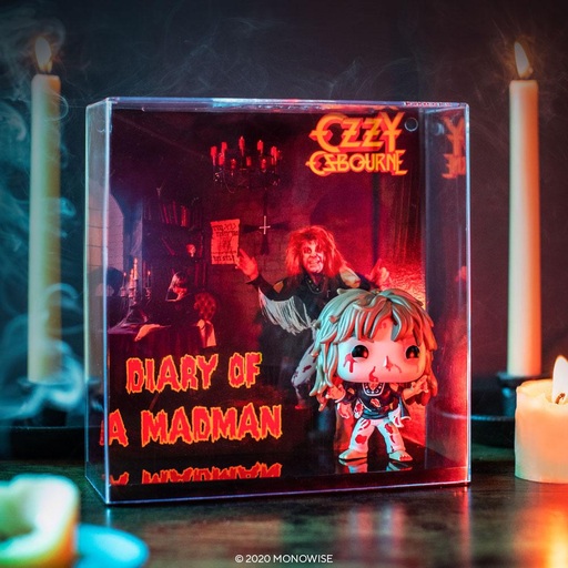 Celebrate the 40th Anniversary of Ozzy Osbourne's Diary of a Madman with the Pop! Album Diary of a Madman collectible. Never forget where it started, or the journey that unfolded along the way, by collecting this special Pop! Album of Diary of a Madman which features a Pop! Ozzy Osbourne (as he's seen on the album's cover) and the album cover art packaged together in a protective case that can be hung on a wall. The Pop! inside is secured to the case to keep your display looking pristine and undisturbed by all the heavy metal music and head banging that's inevitable.